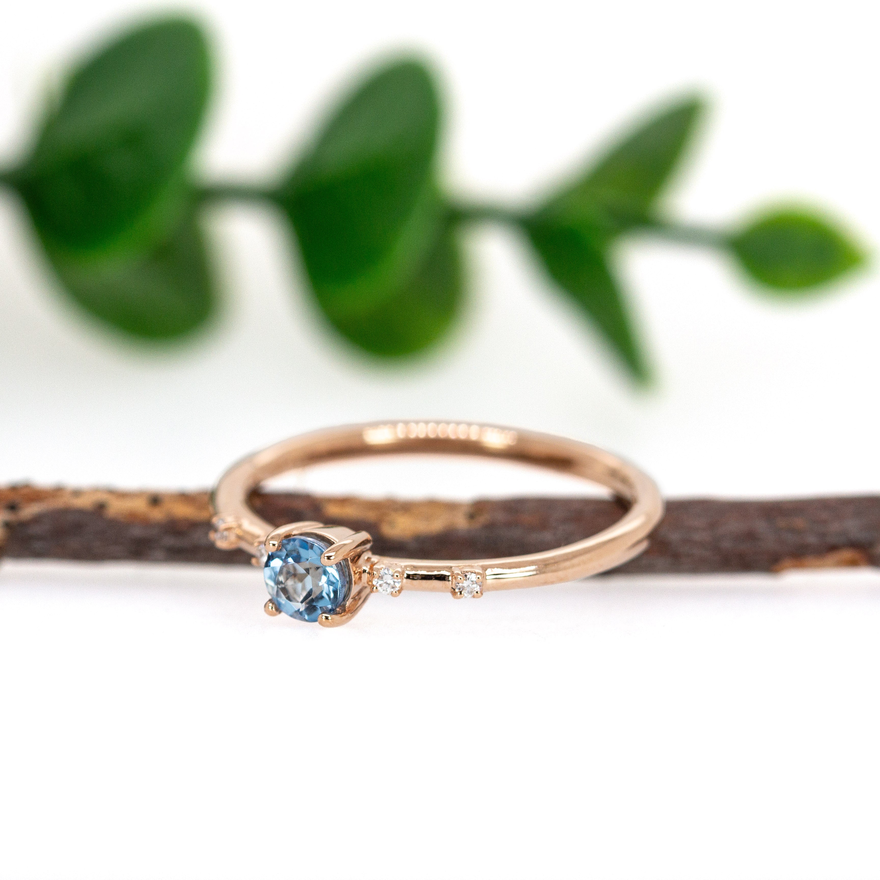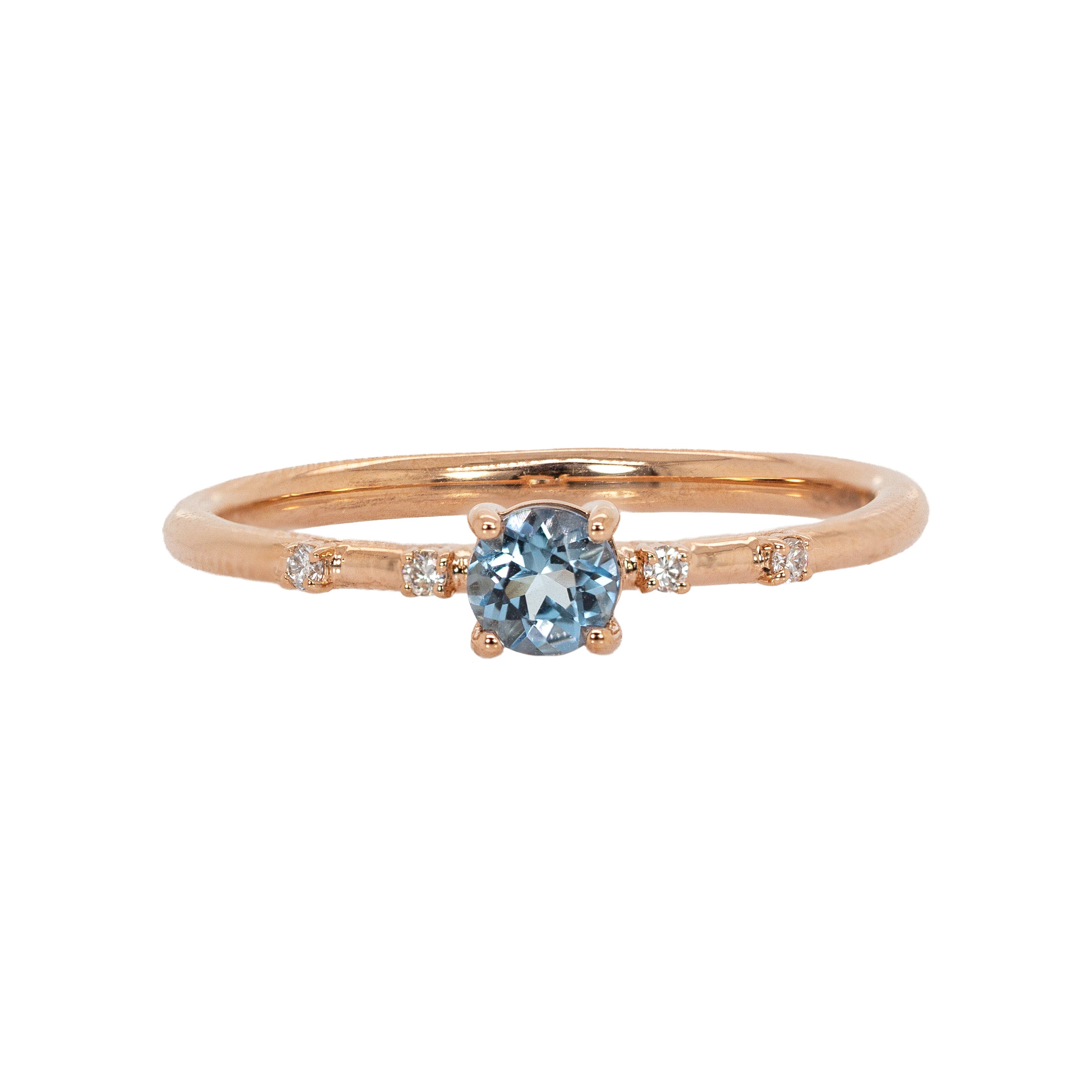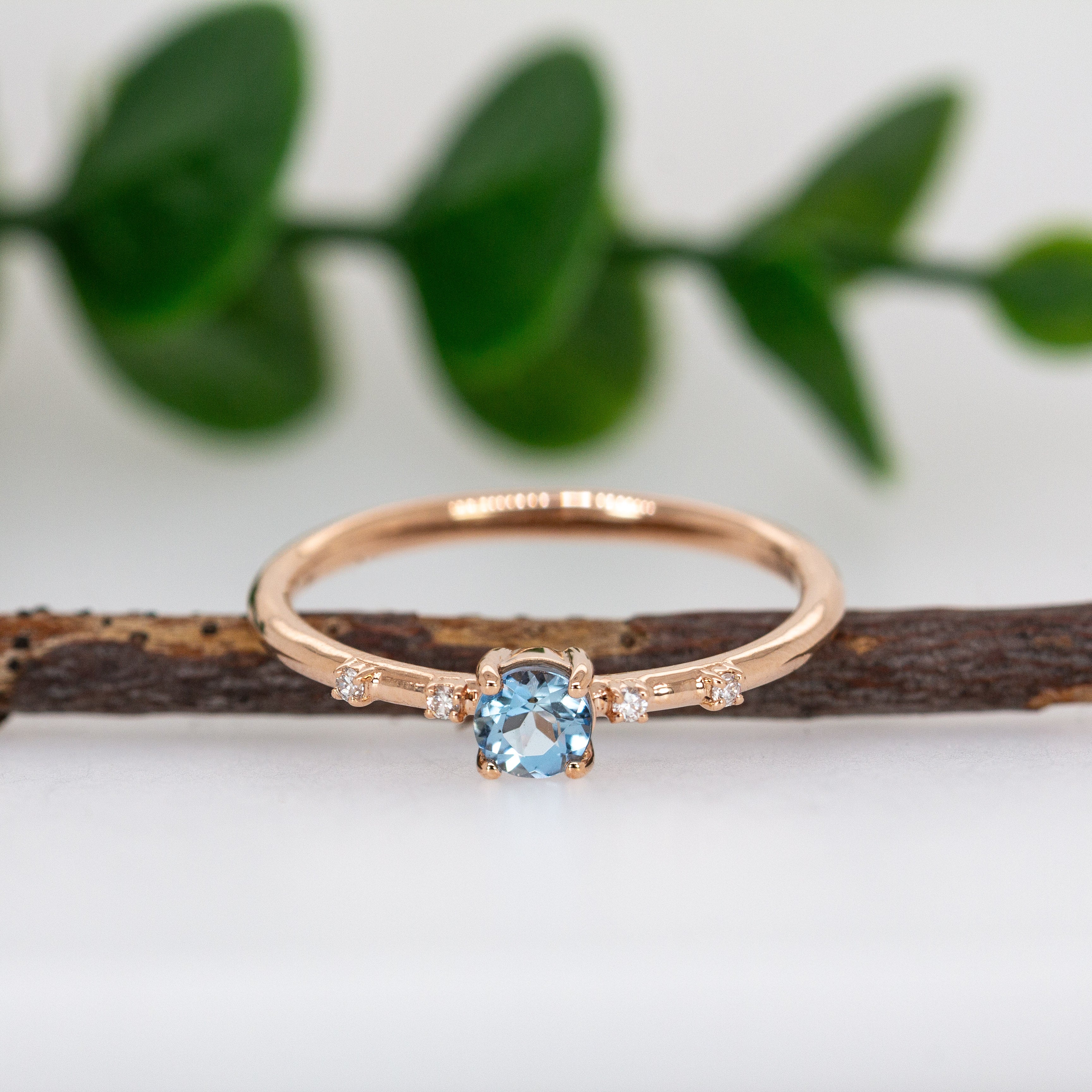 Ruhanika 14K Rose Gold Aquamarine Diamond Ring | Round 4mm