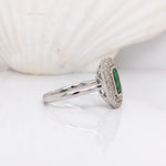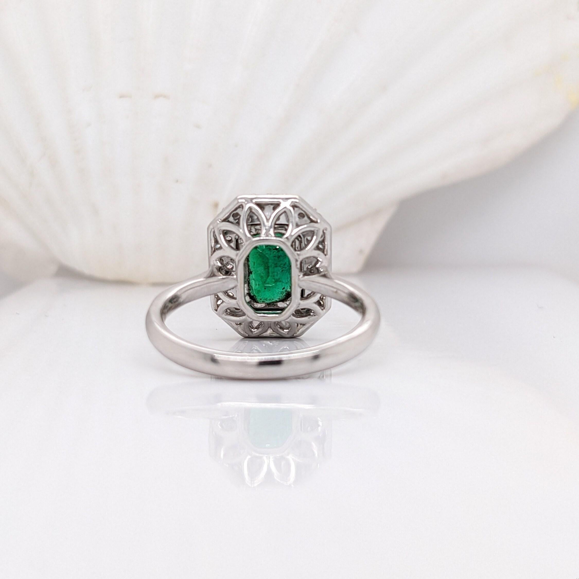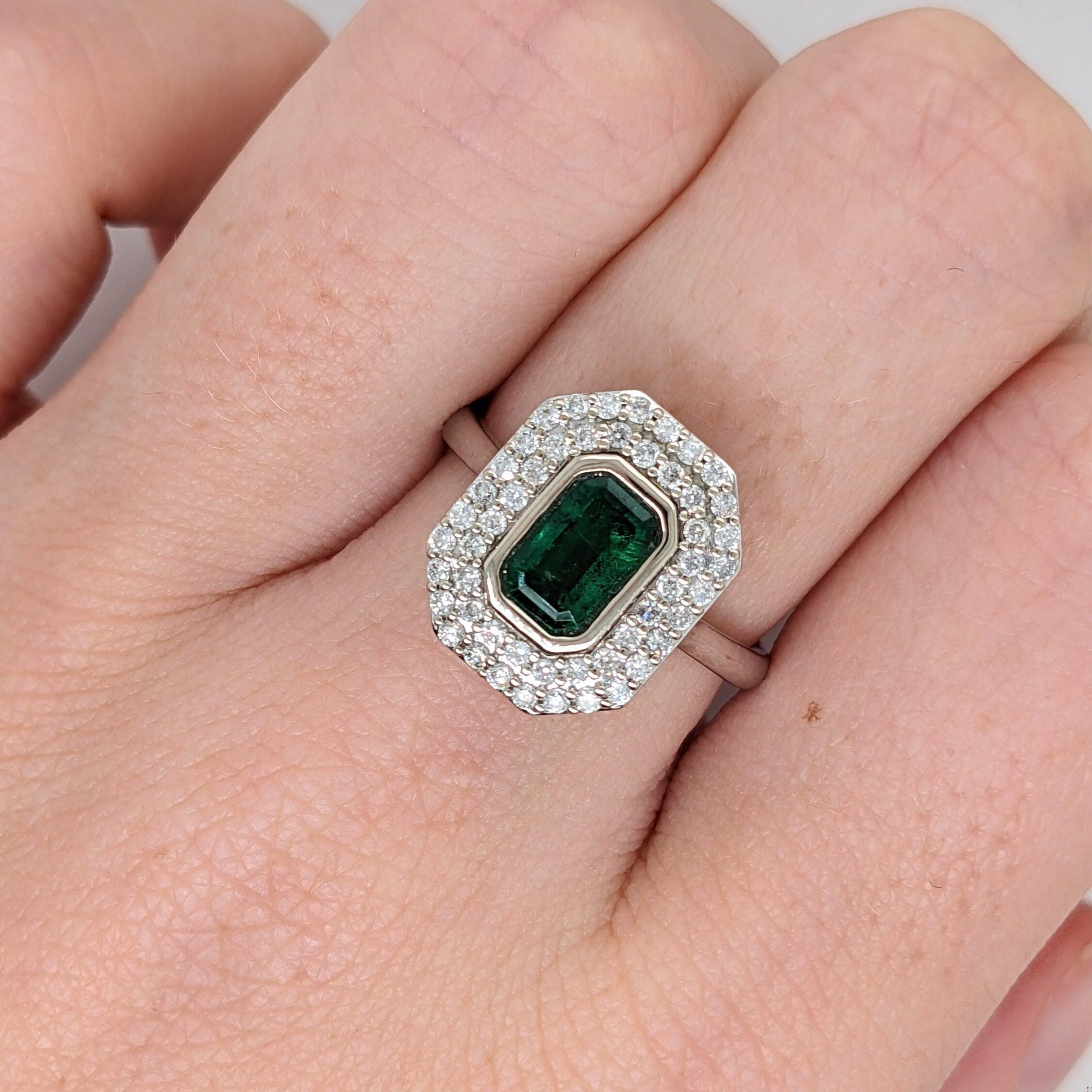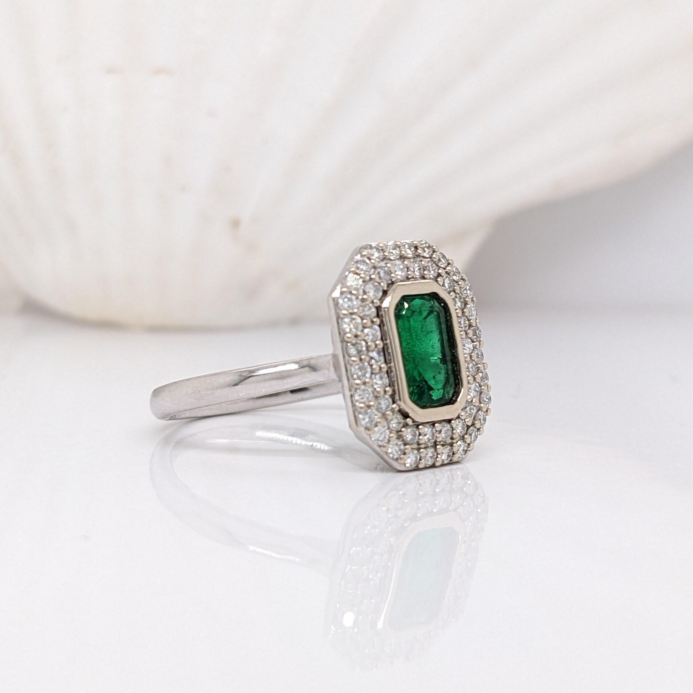 Zambian Emerald Ring w Earth Mined Diamonds in Solid 14k White Gold | Emerald cut 7x5mm | May Birthstone