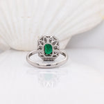 Zambian Emerald Ring w Earth Mined Diamonds in Solid 14k White Gold EM 7x5mm