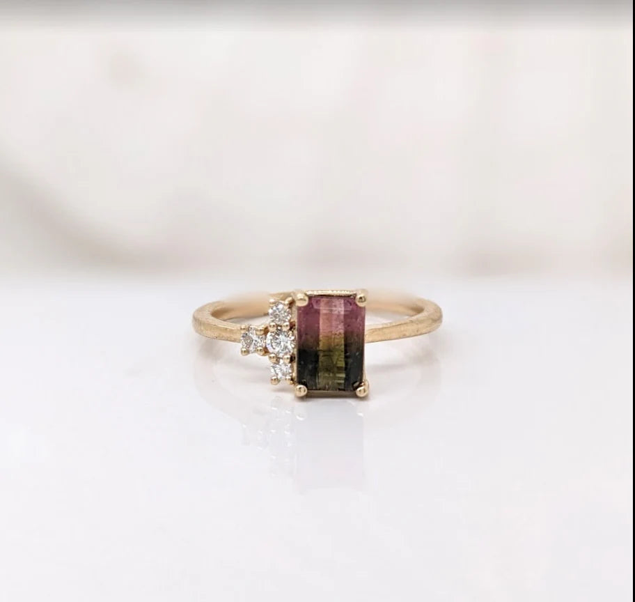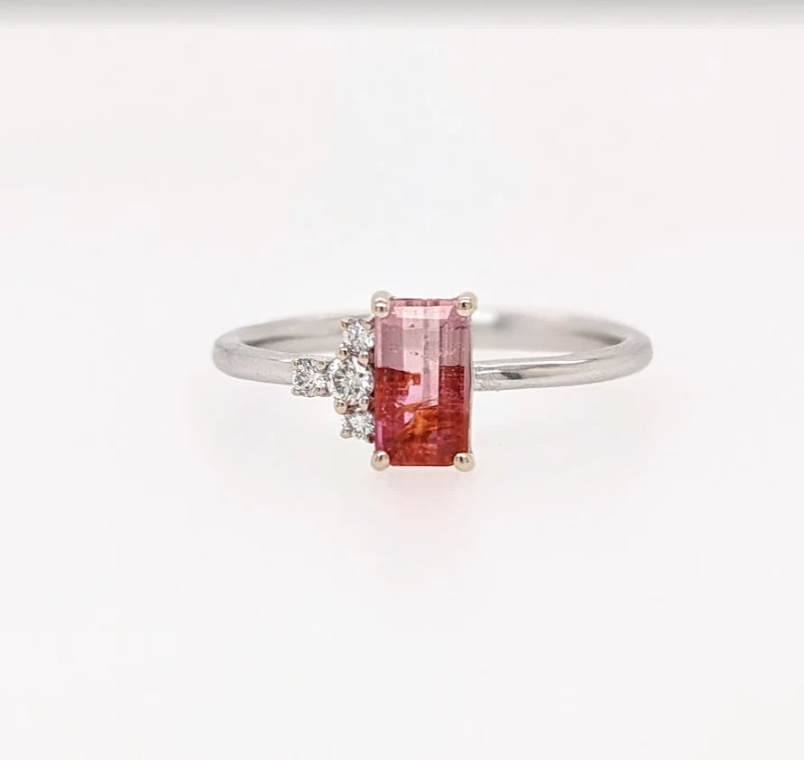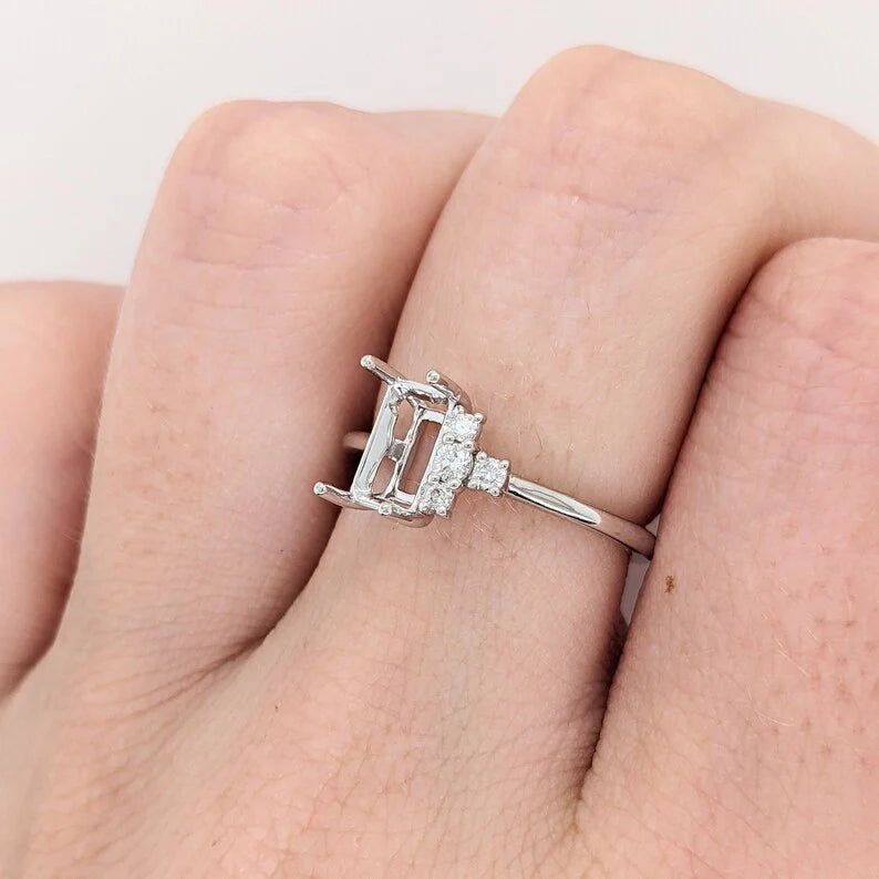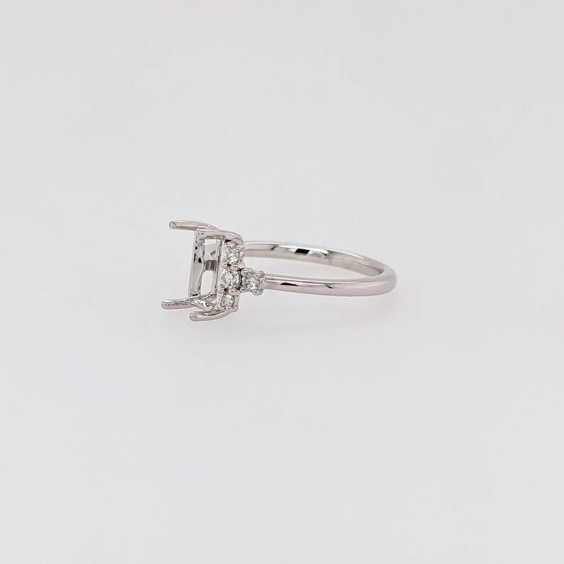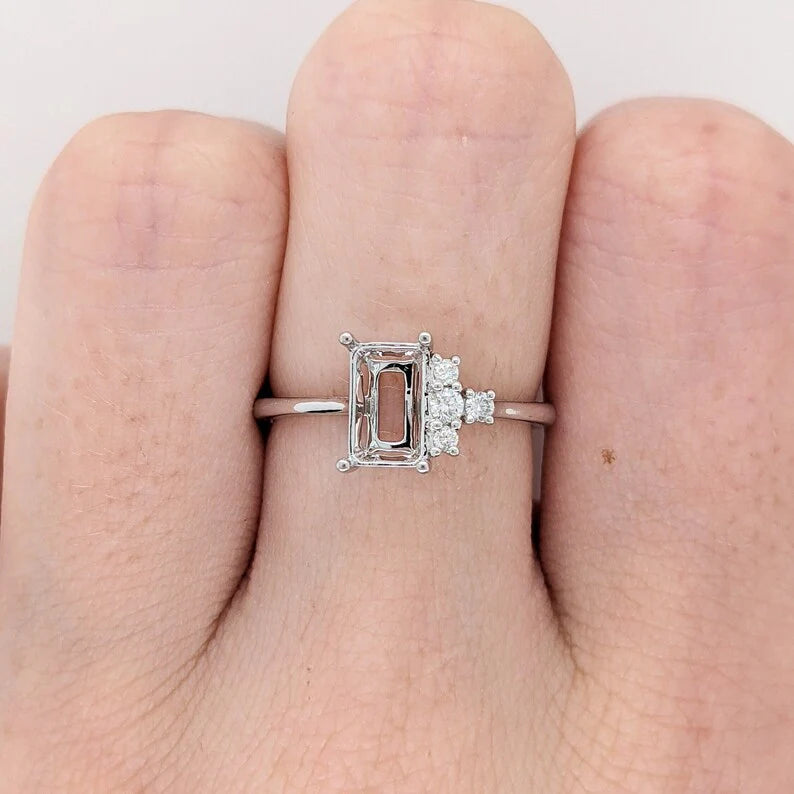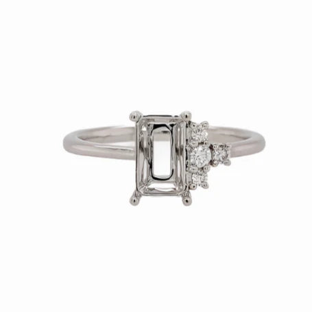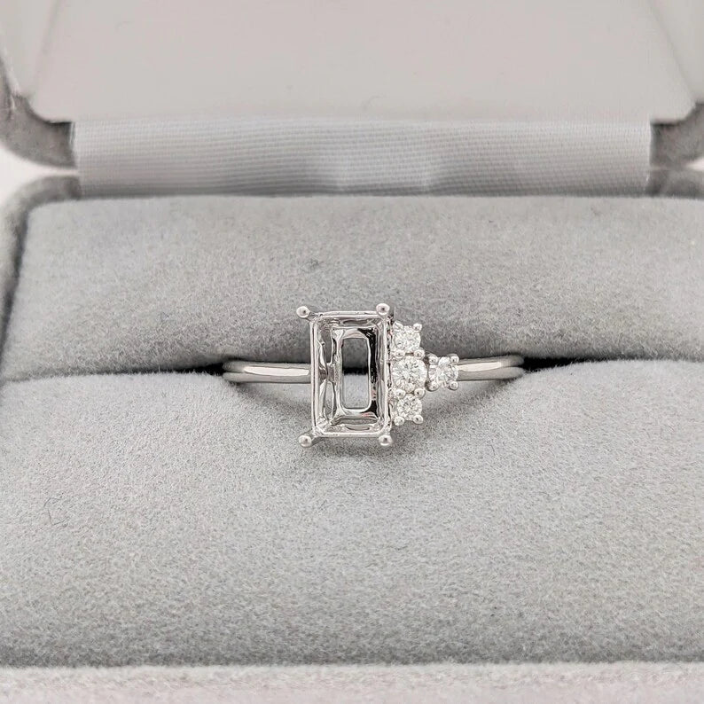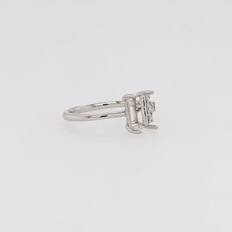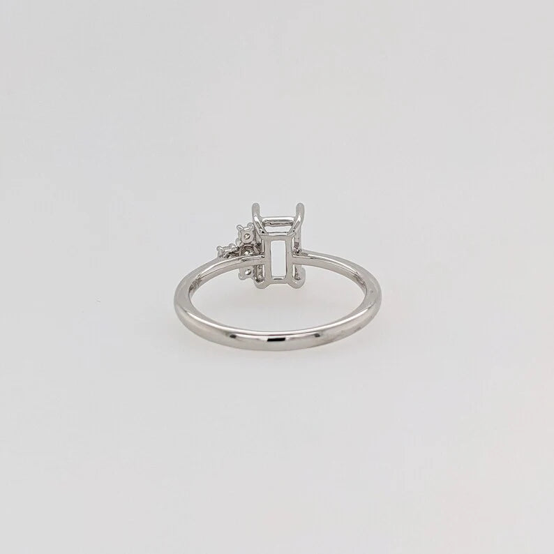 Asymmetrical Diamond Accented Ring Setting | Emerald Cut 6x4mm 7x5mm 8x6mm