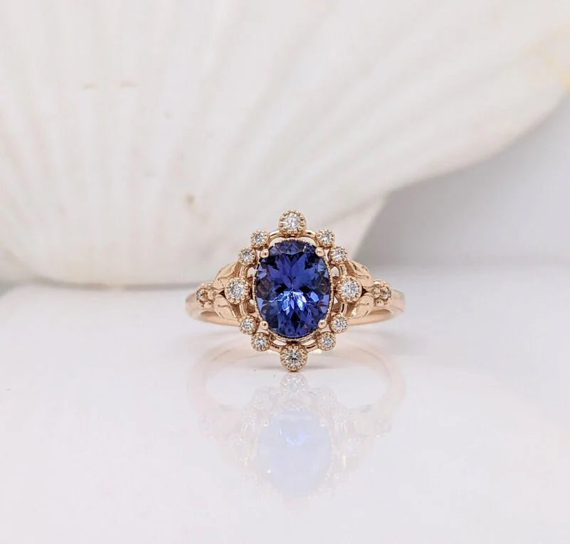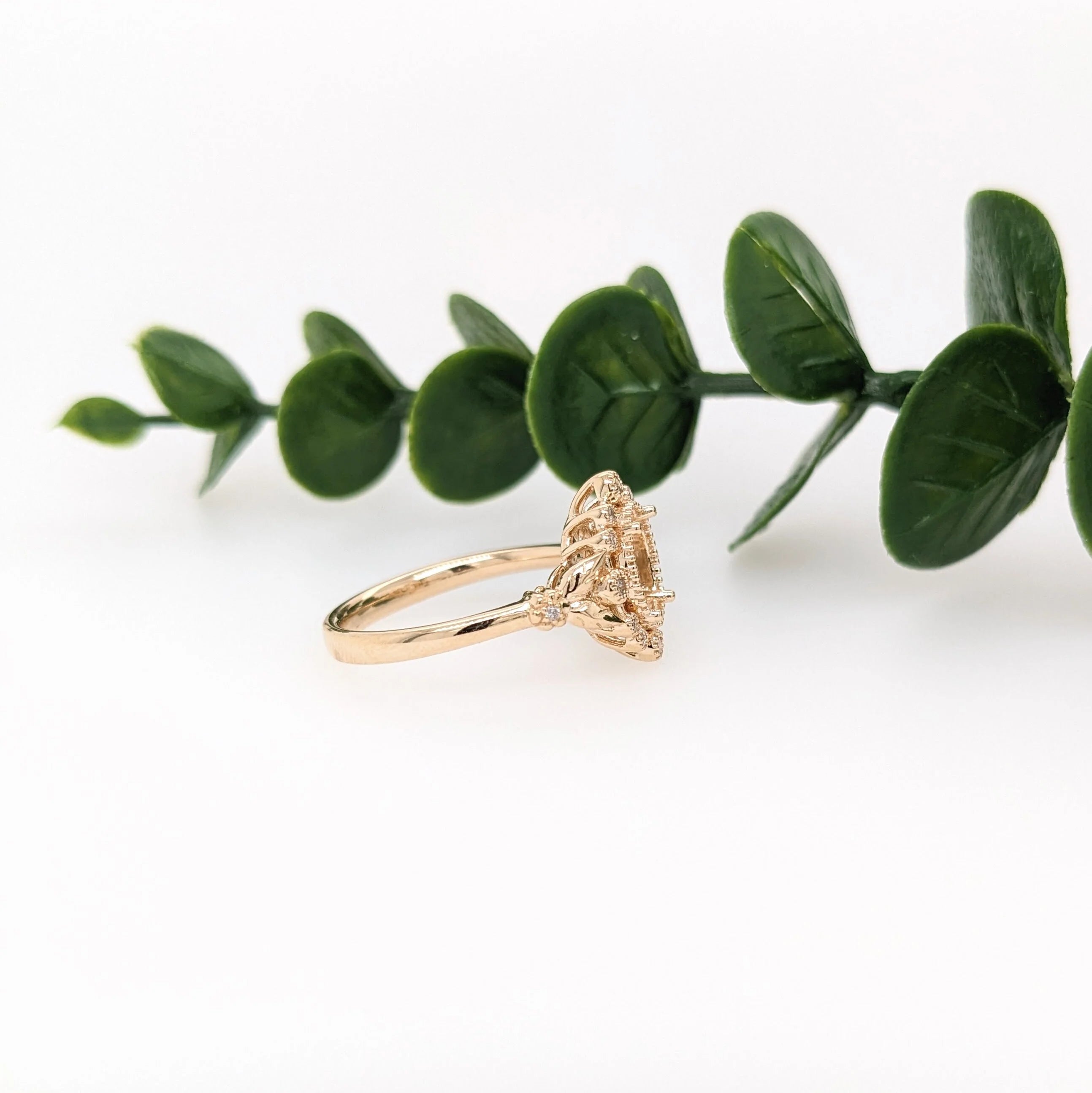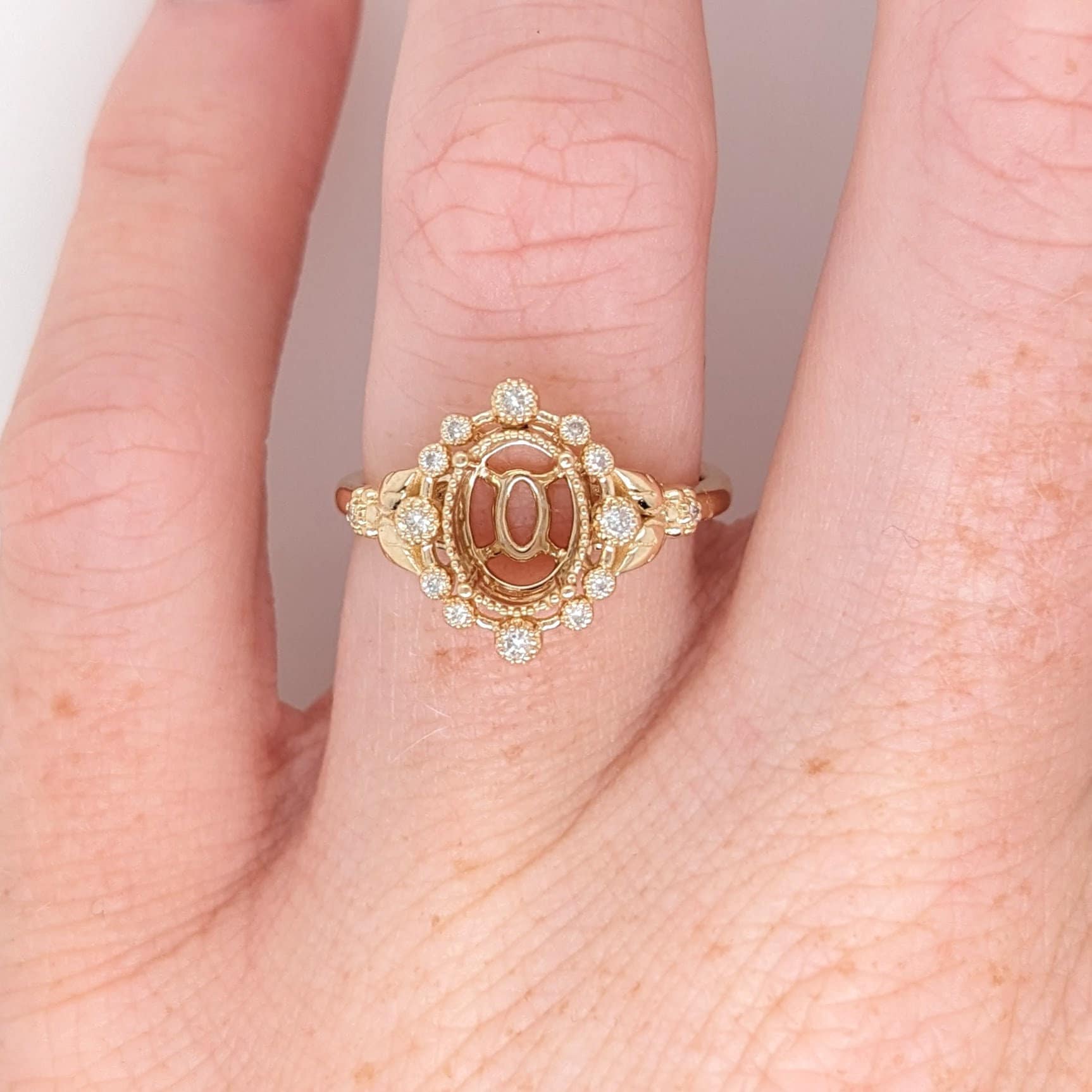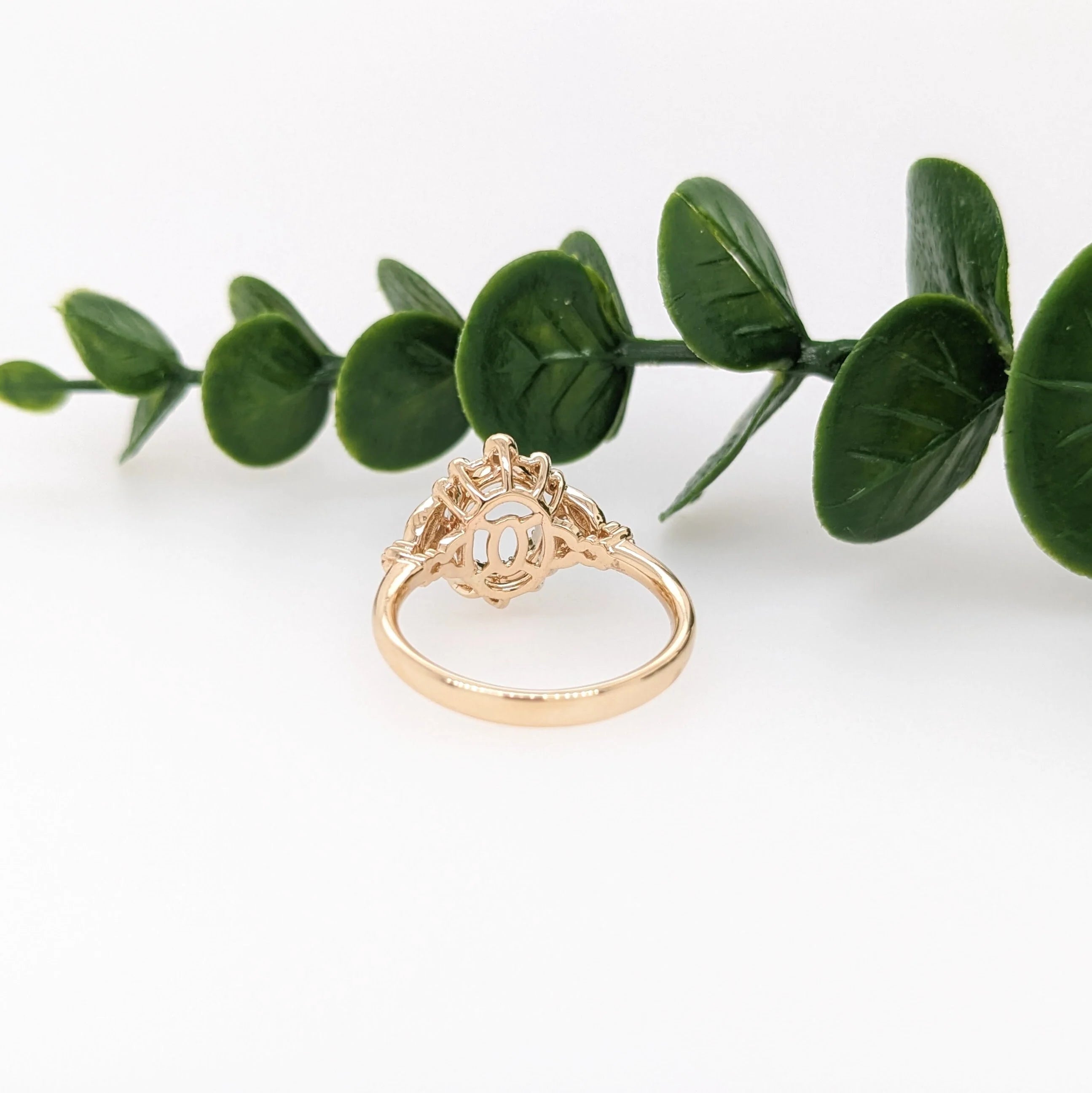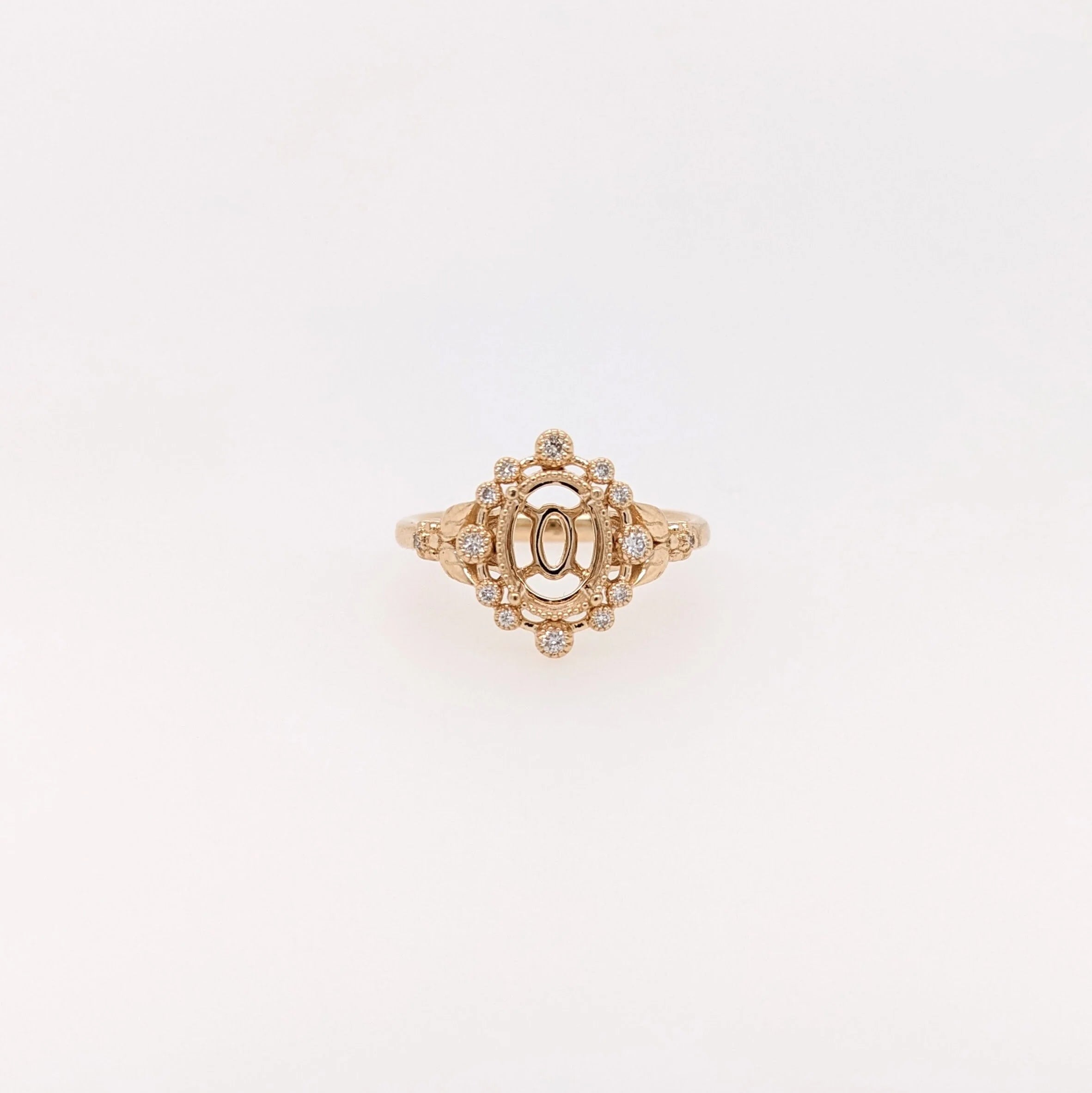 Dazzling Diamond Halo Ring Semi Mount in 14K Gold W Natural Round Diamond Accents | Oval Shape | Gemstone Ring Setting | Customizable