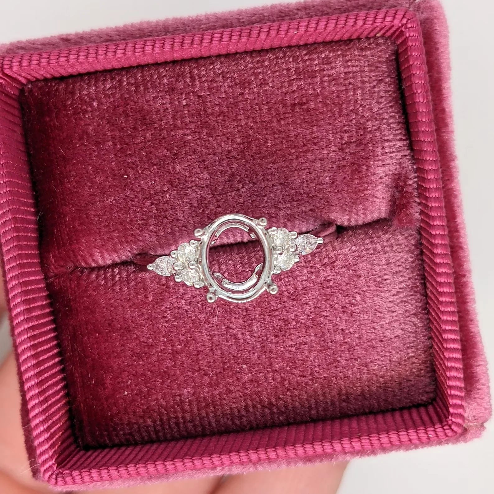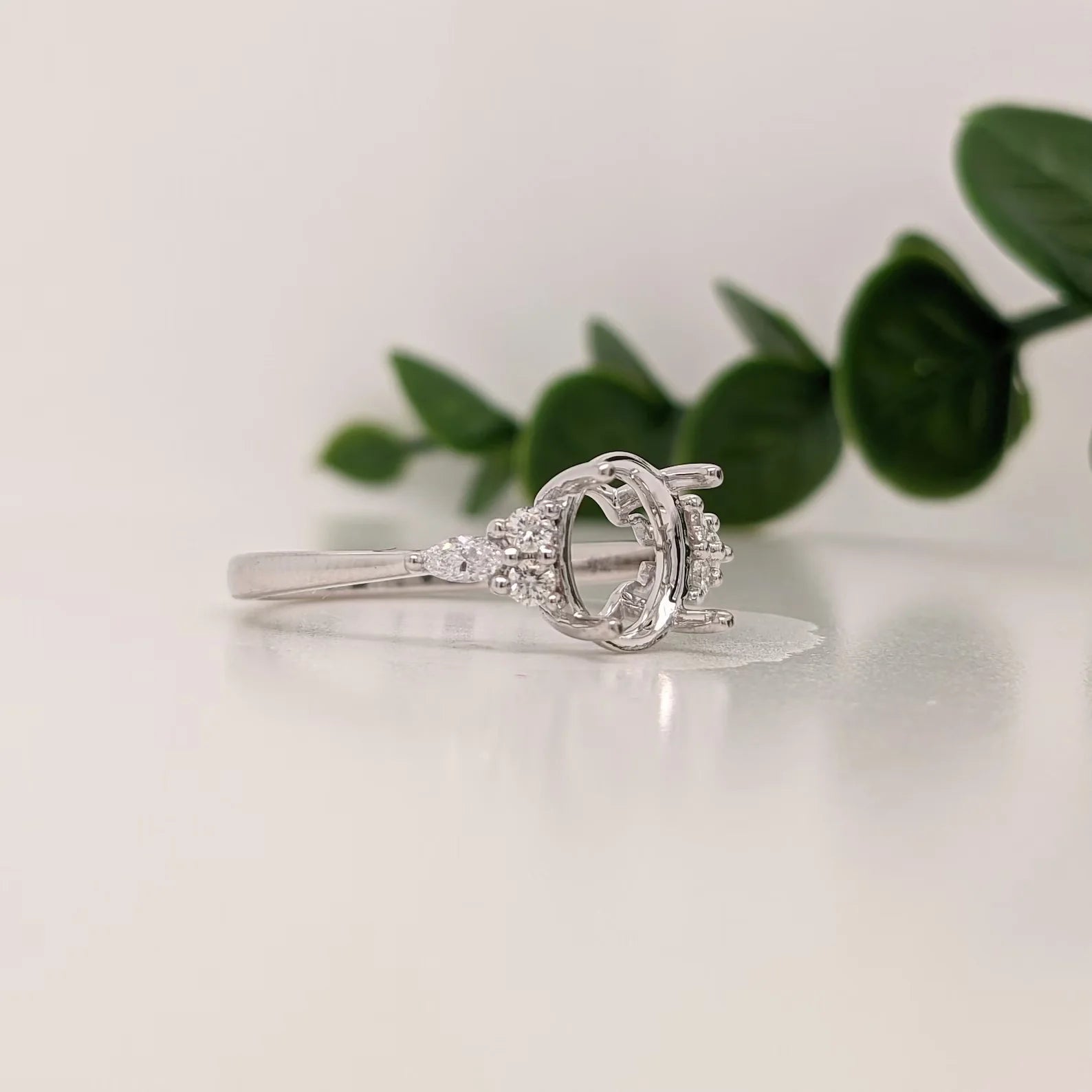 Gigi 14k Solid Gold Ring Setting W Natural Diamond Accents | Oval 7x5mm 8x6mm 9x7mm 10x8mm