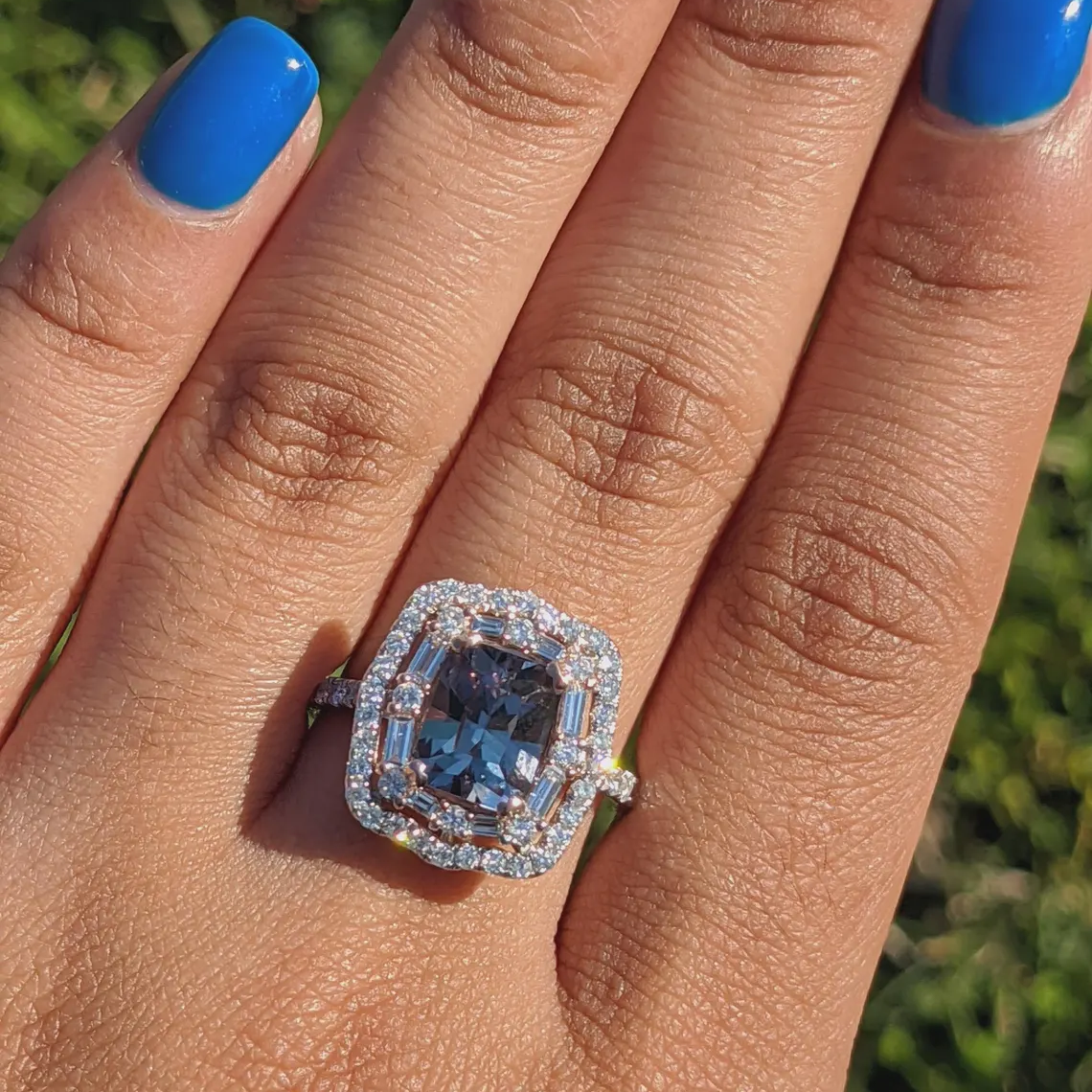 Luna Collection | Double Halo Baguette & Round Diamond Accented Ring Setting