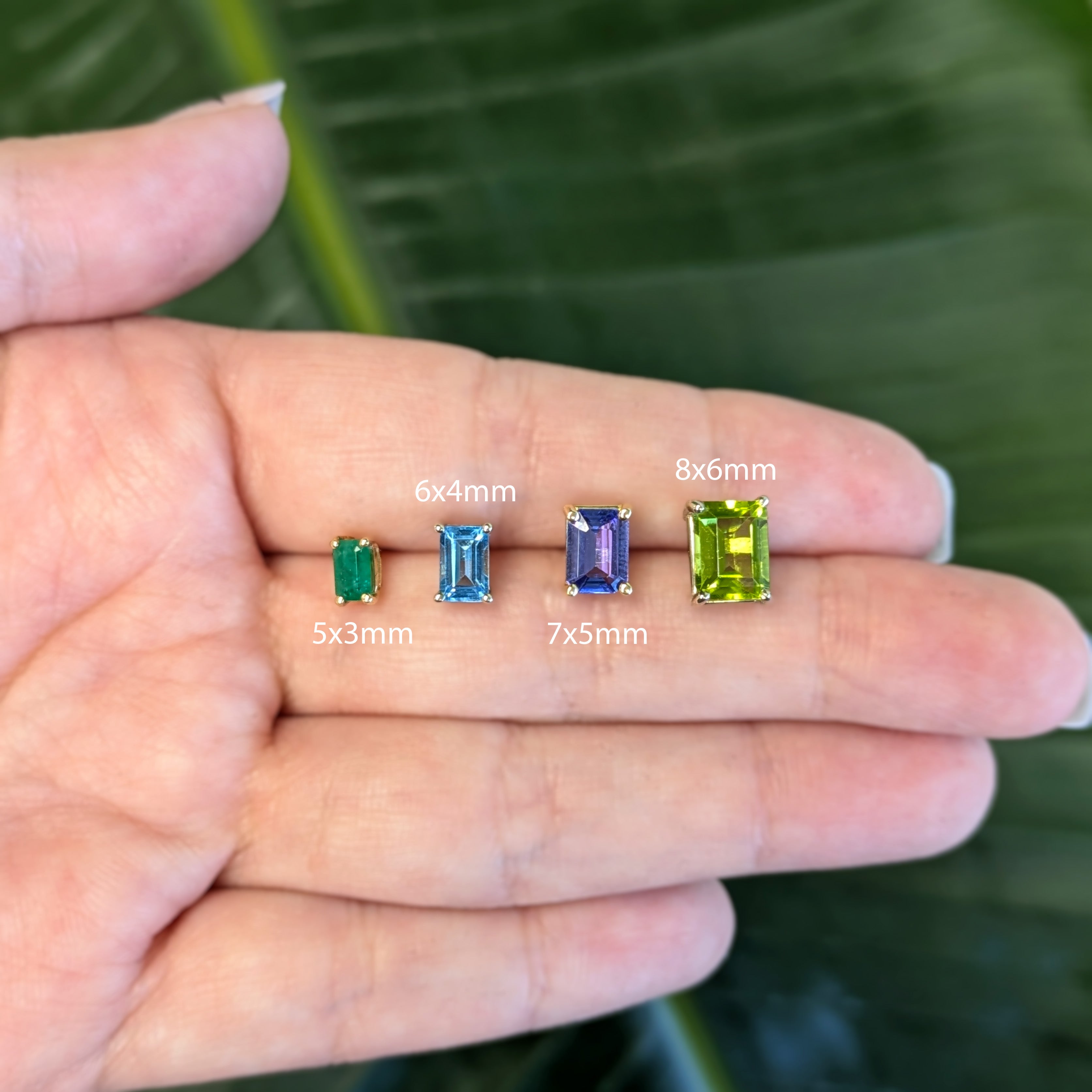 Swiss Topaz Emerald Cut Solitaire Stud Earrings | 6x4mm 7x5mm 8x6mm 9x7mm 10x8mm