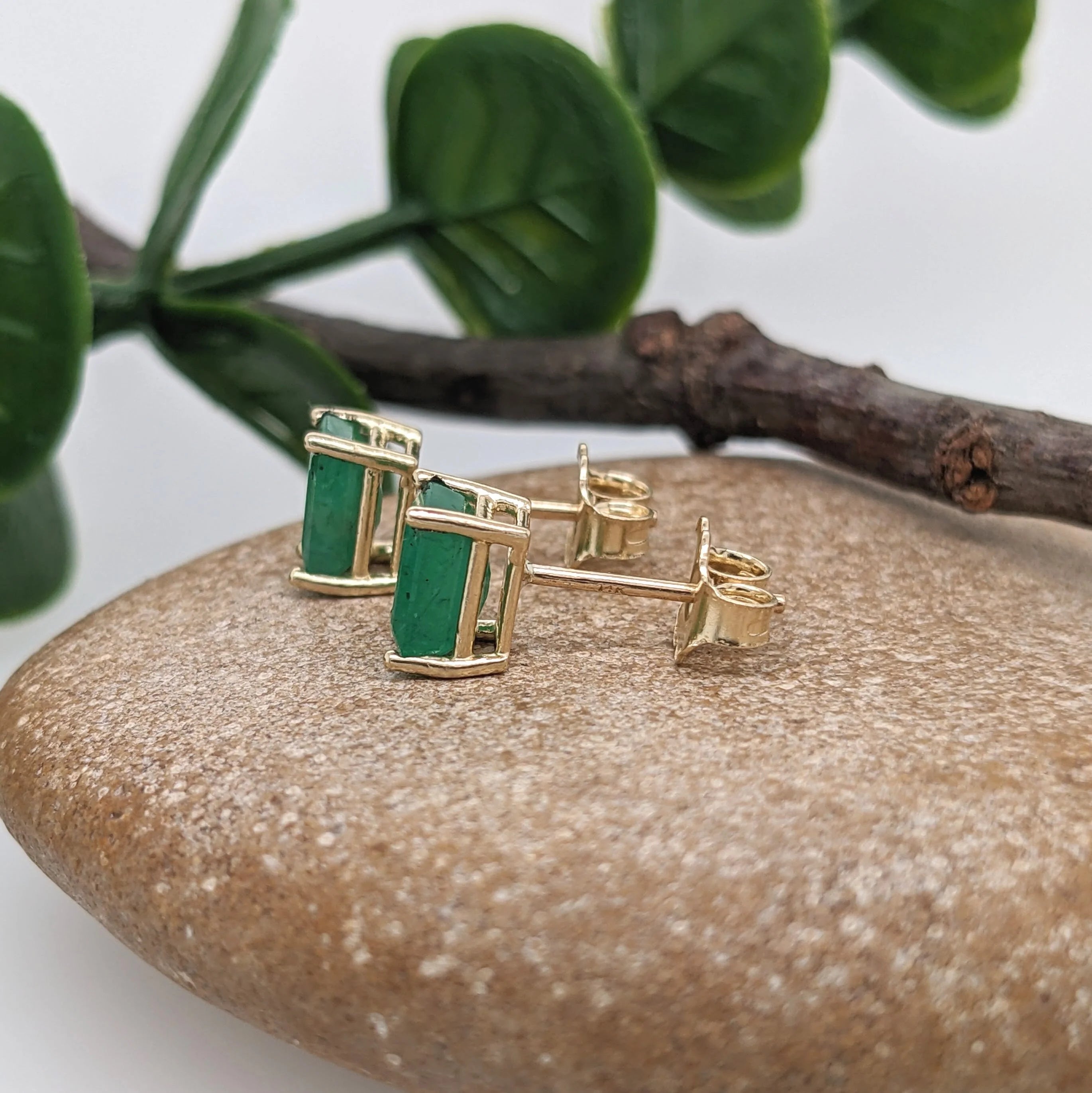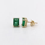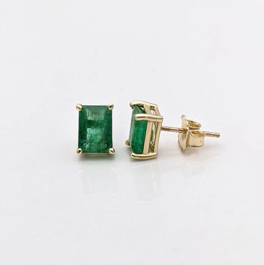 Beautiful Zambian Emerald Solitaire Stud Earrings in Solid 14K Gold | Emerald Cut 5x3mm 6x4mm 7x5mm 8x6mm