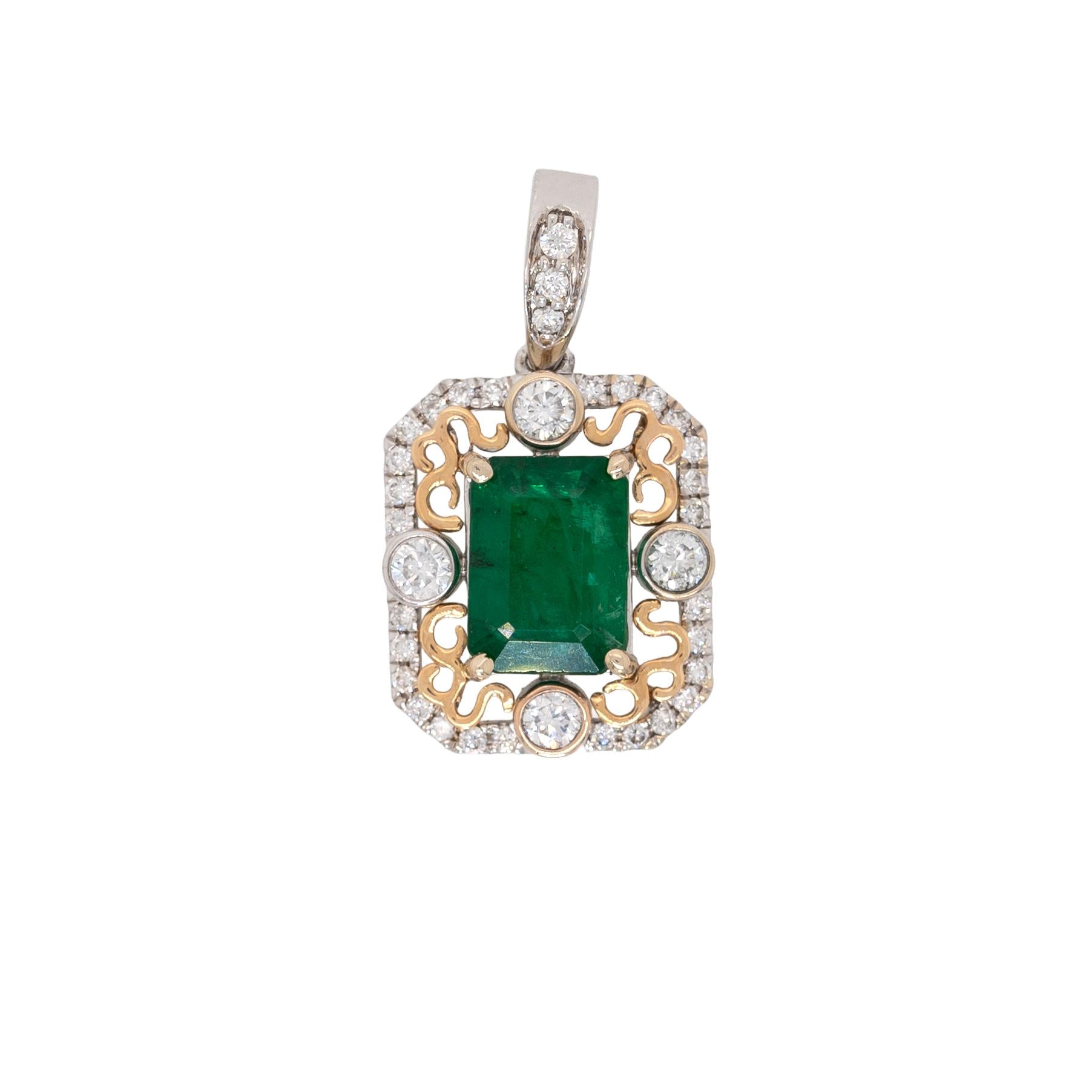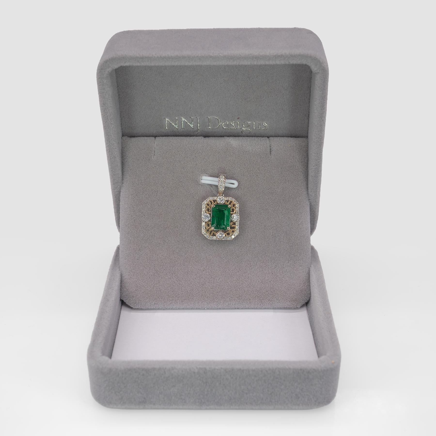 Niva Solid 14K Gold Emerald Pendant with Natural Diamonds Accents, 7x5mm