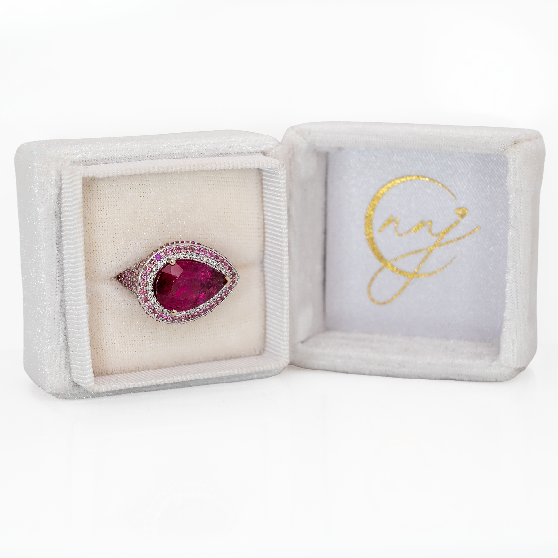 Tisha Solid 14k Gold Rubellite Tourmaline Ring with Natural Diamonds Accents, Pear cut 15.5x9.5mm