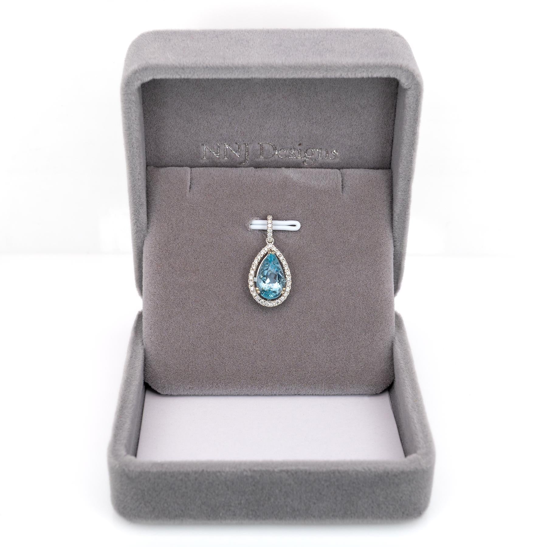 Beautiful London Topaz Pendant in Solid 14K Gold with Natural Diamond accents | Oval Cut 16x12mm | December Birthstone