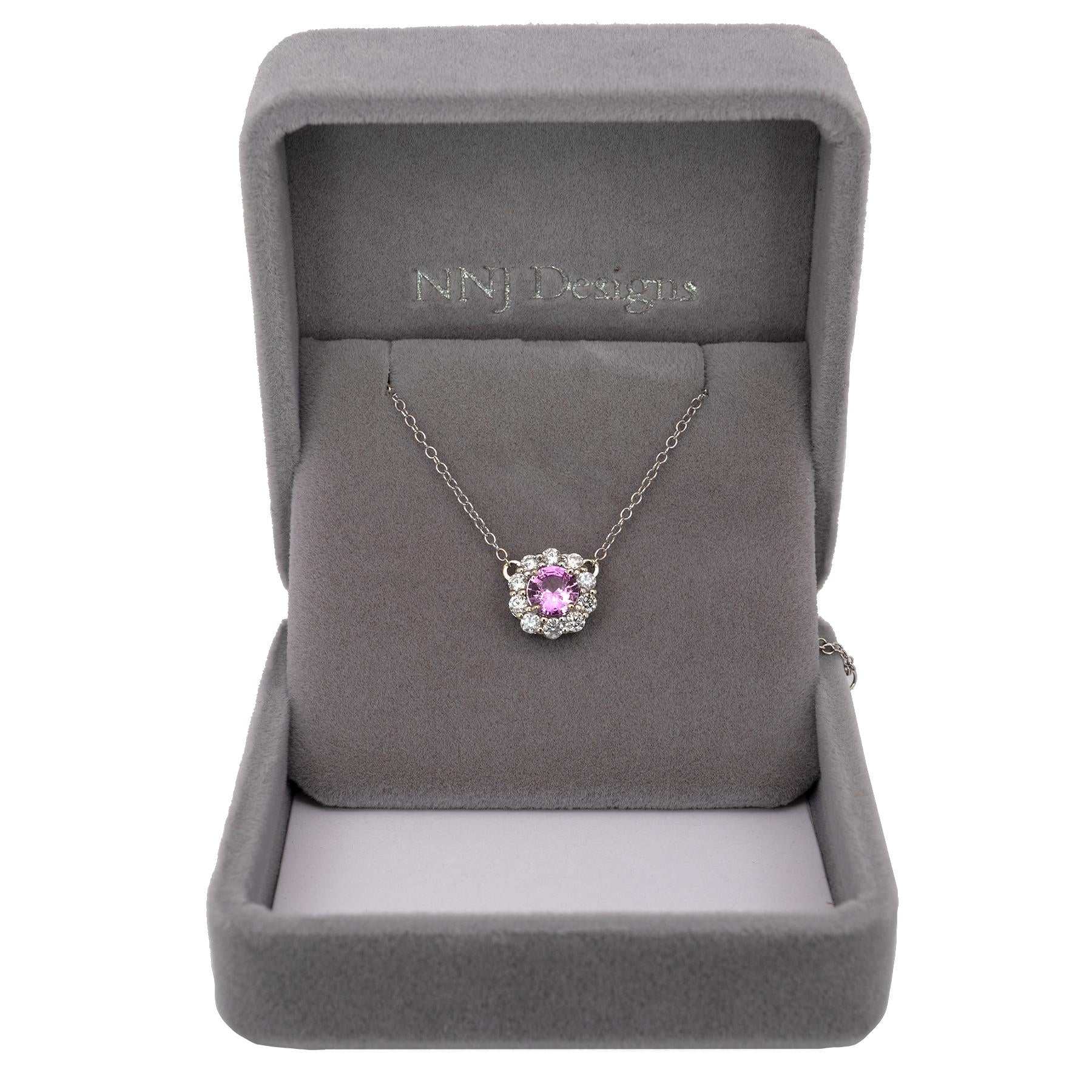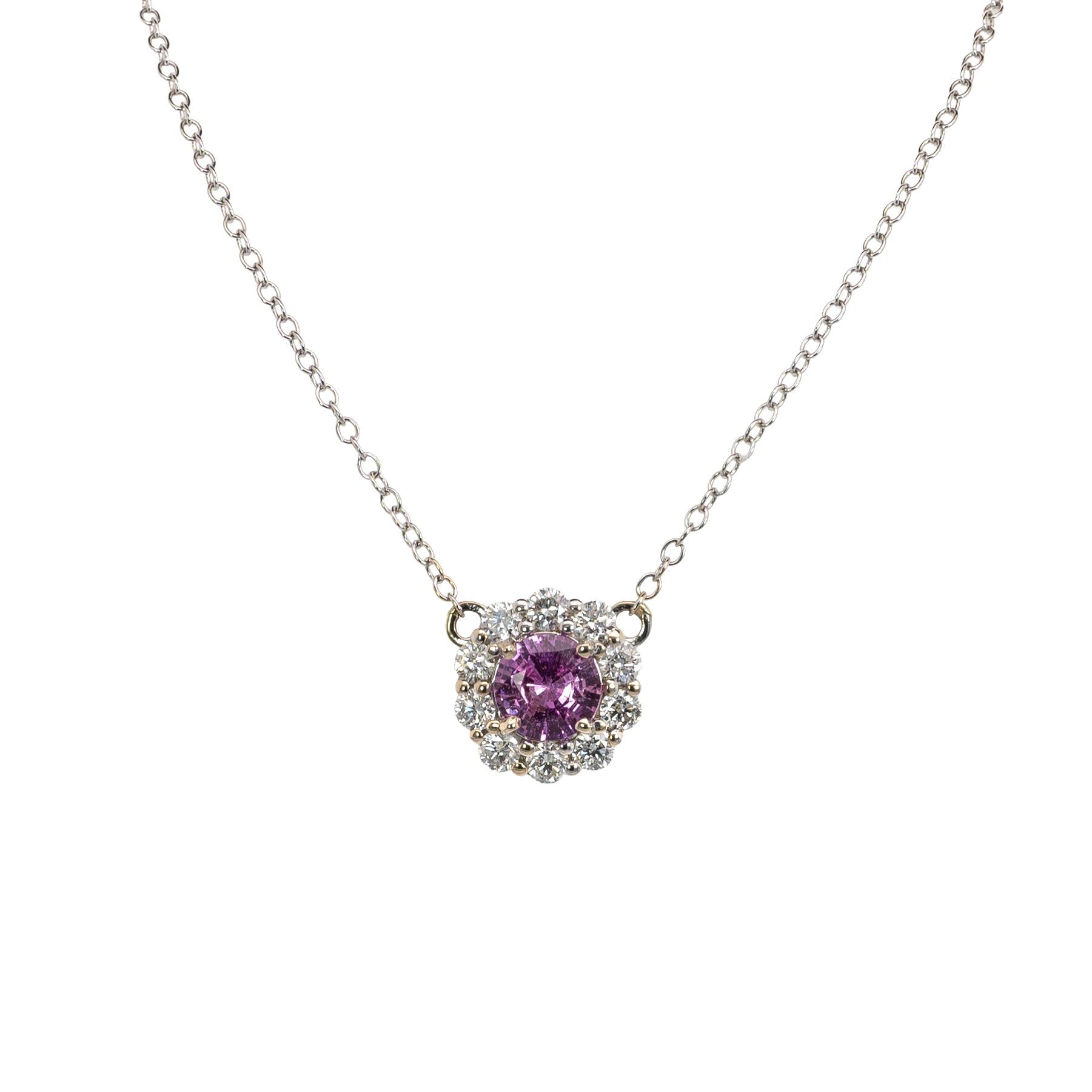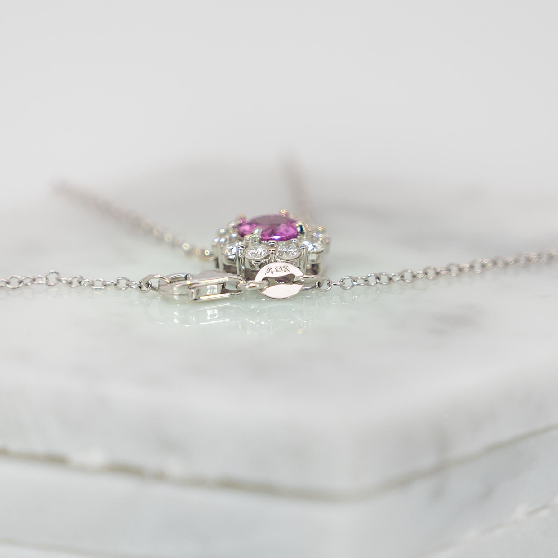 Eloise Solid 14K Gold Pink Sapphire Pendant Attached Chain with Natural Diamonds