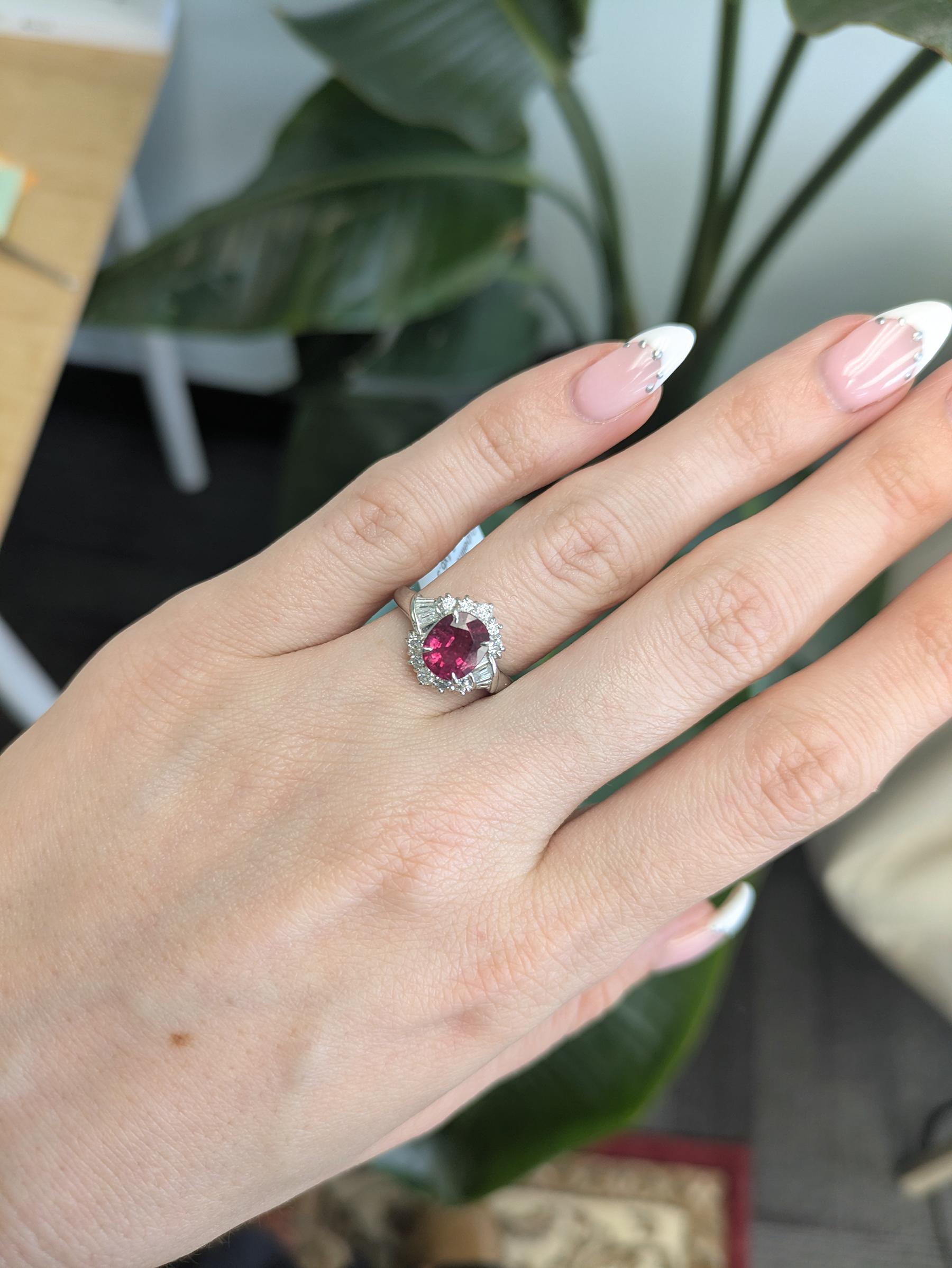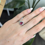 Make a bold statement with this 1.5ct Rubellite Garnet ring, showcasing a richly saturated 8.4x7mm gemstone full of passionate color. A natural diamond accent adds the perfect touch of brilliance, enhancing the stone’s vibrant glow. Expertly crafted in solid 14K gold, the setting offers lasting beauty and everyday luxury. Striking yet timeless, this piece is designed for those who love their jewelry with confidence and character.