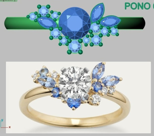 We create a CAD render, a computer-generated model of the piece, that is used to cast the actual metal jewelry.
