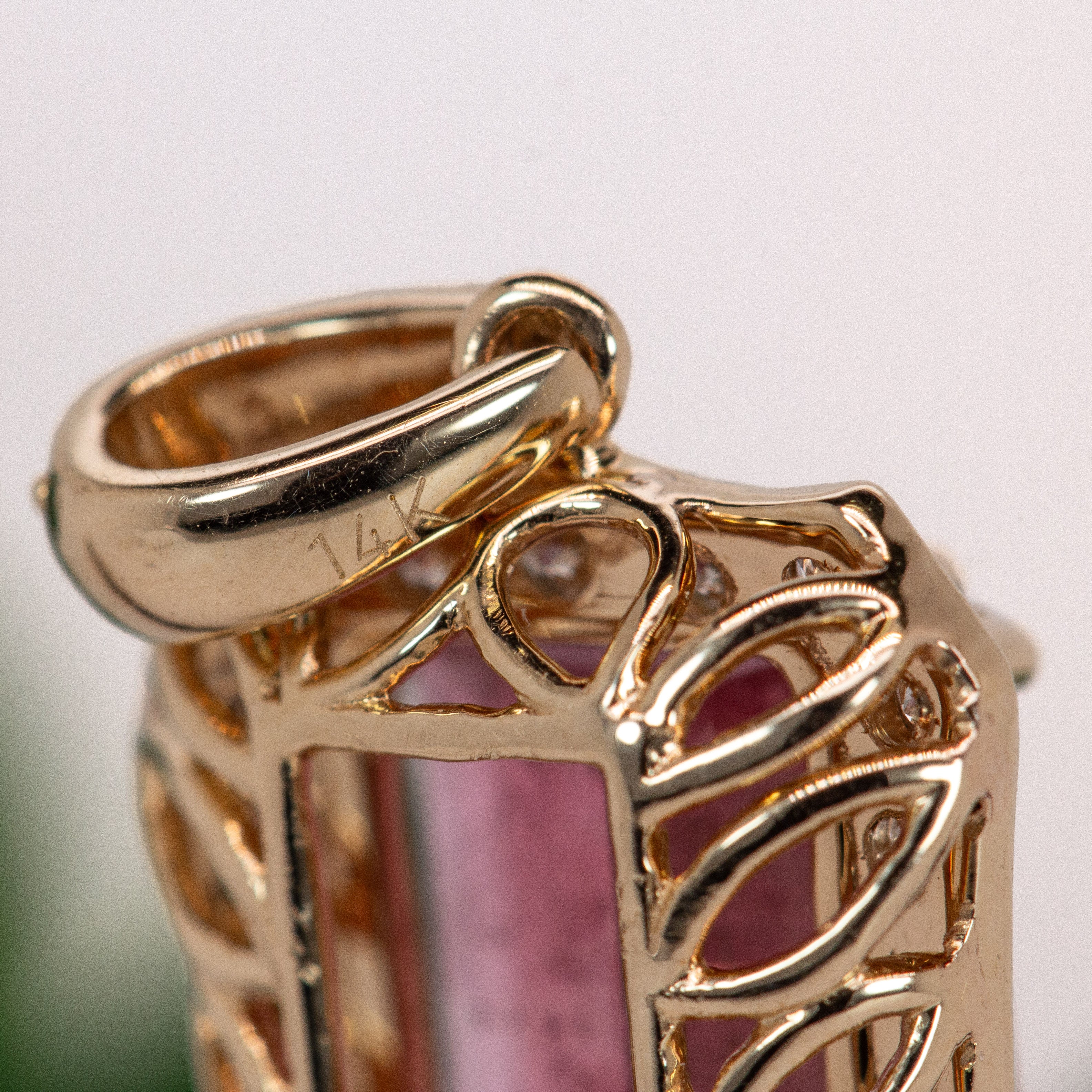 10ct Watermelon Tourmaline Pendant 14K Yellow Gold with Natural Earth Mined Diamonds | EM 26.5x8mm