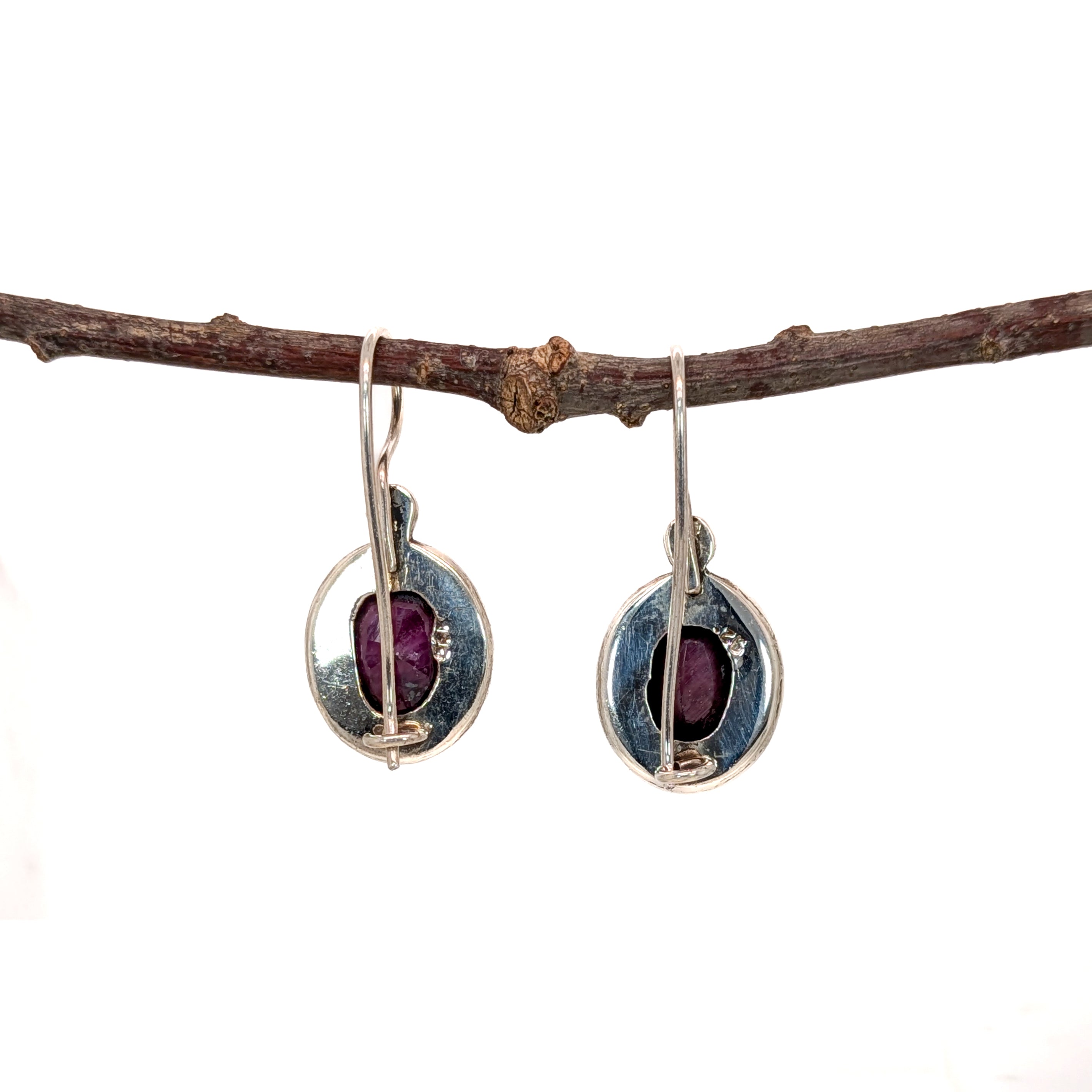 Chunky Ruby Earrings with Pearl Accents in Solid Sterling Silver | Oval Shape