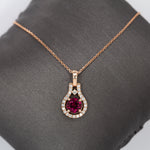 Surrounded by sparkling earth-mined diamonds, the pendant radiates brilliance and sophistication. Each diamond is carefully selected to complement the rich color of the ruby, enhancing its natural fire.