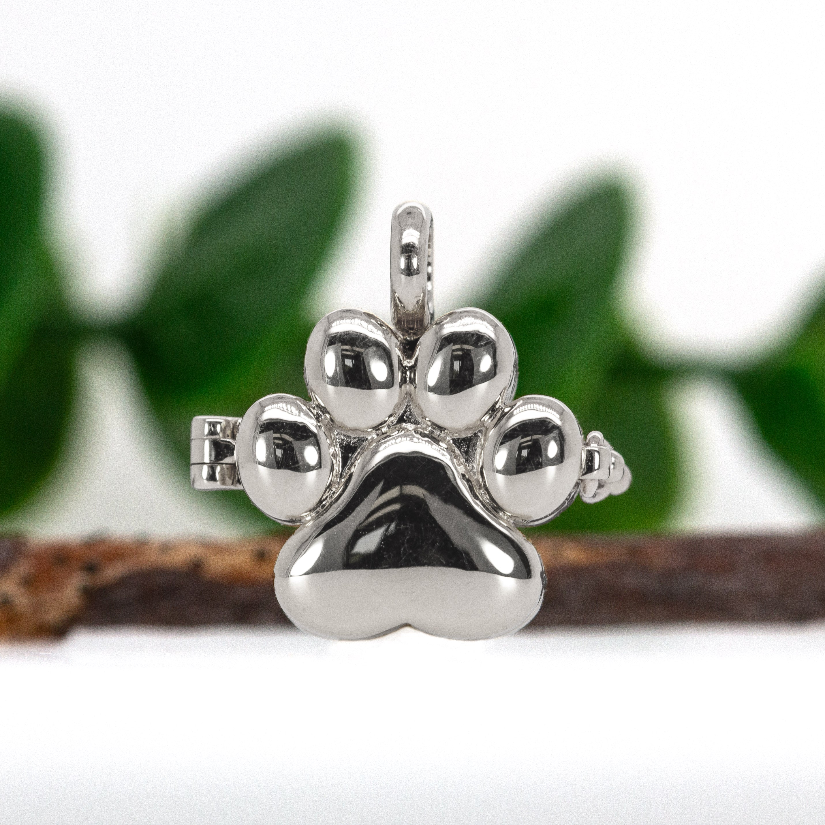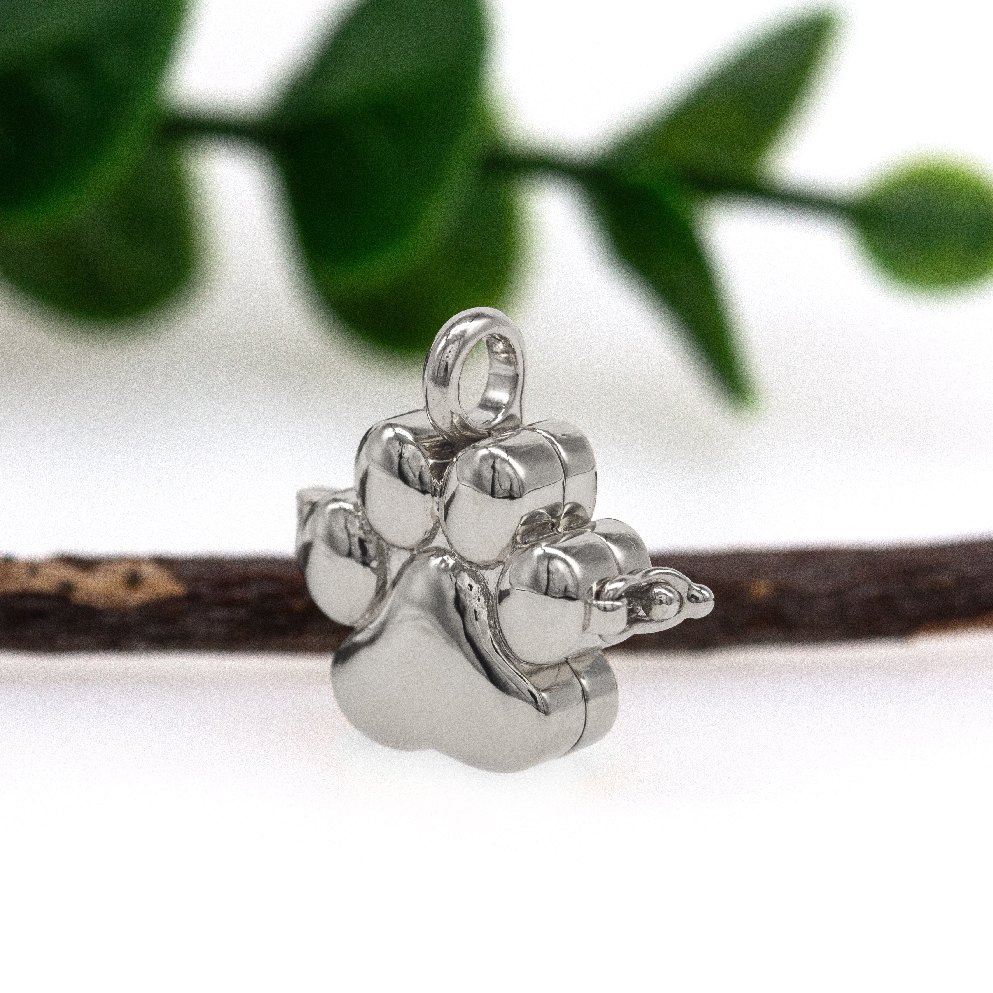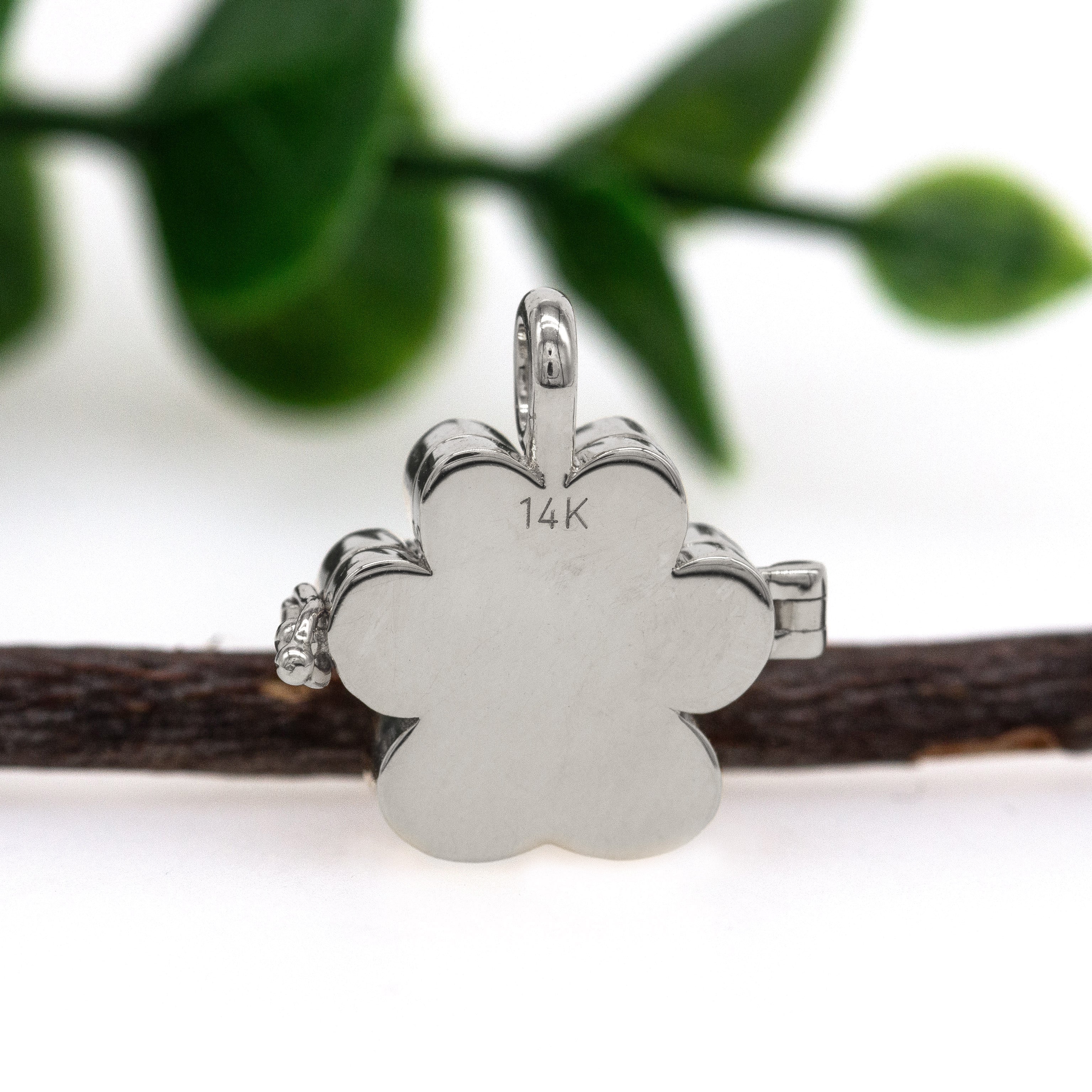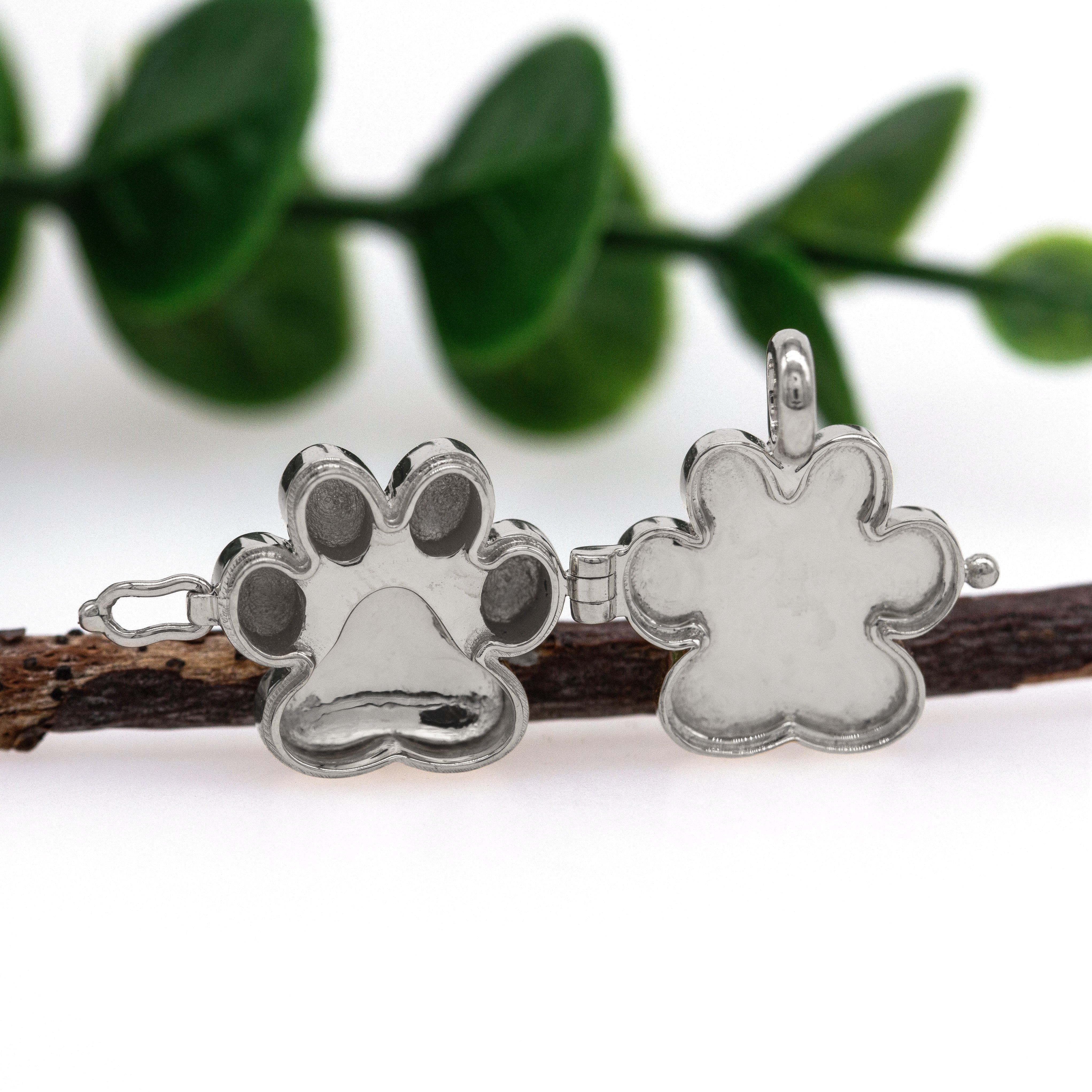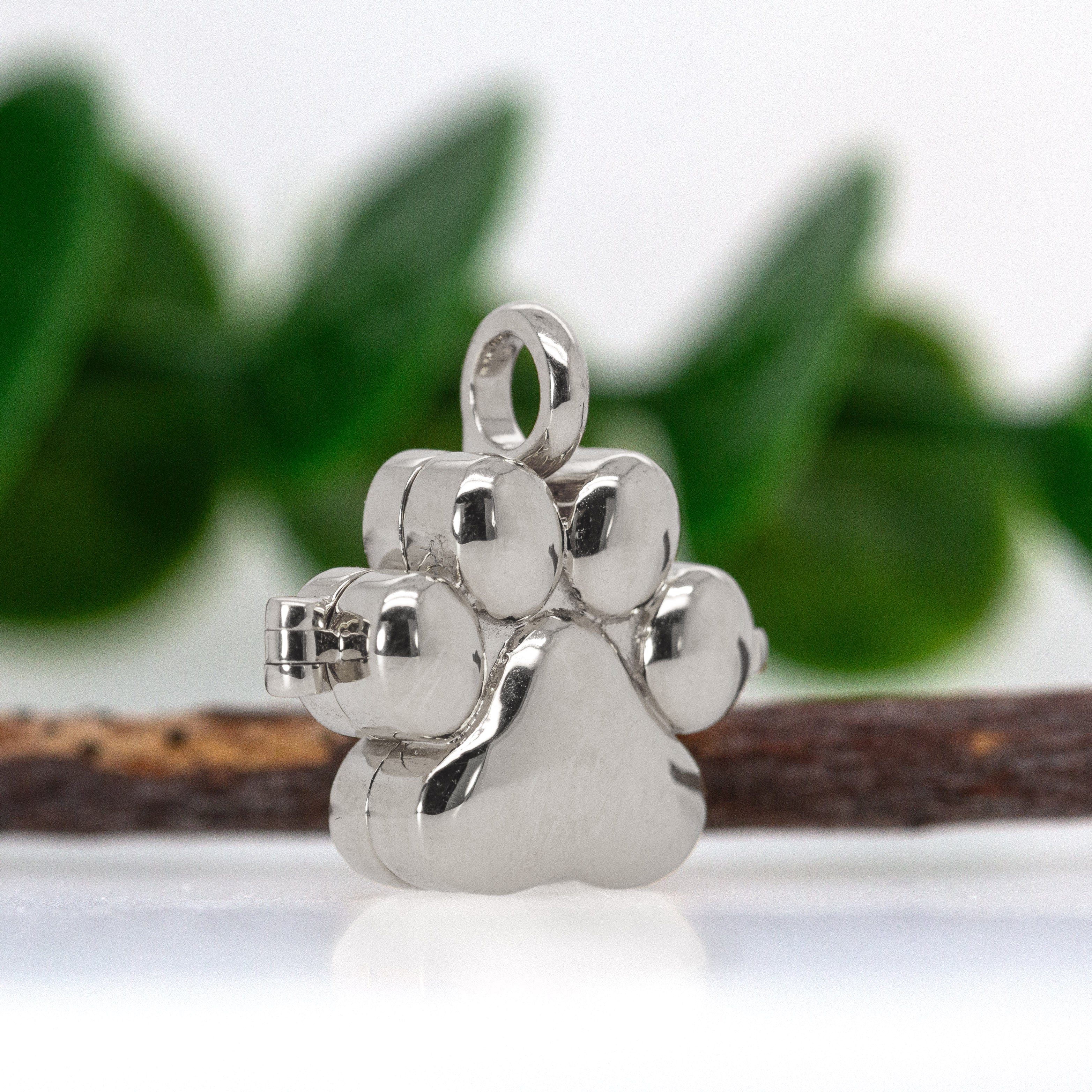 14K White Gold Paw-Print Locket Pendant
