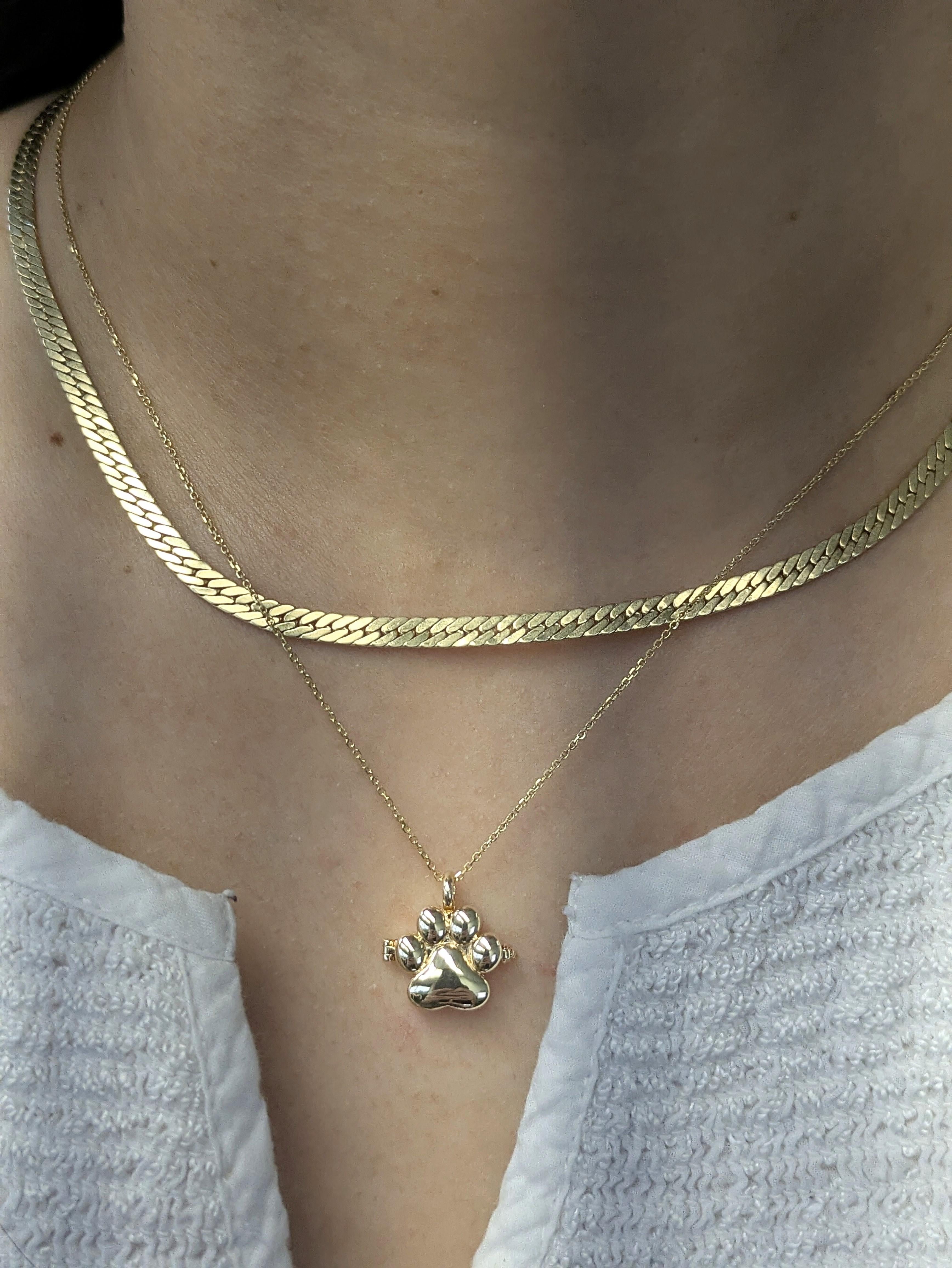 Keep your beloved pet’s paw prints forever close with this exquisite 14k solid white gold locket pendant. Expertly crafted to hold a special photo or memento inside, it offers a personal, meaningful way to honor your pet’s loyalty and companionship. A perfect gift for any pet lover who wants to treasure those unforgettable moments and keep their furry friend near always.