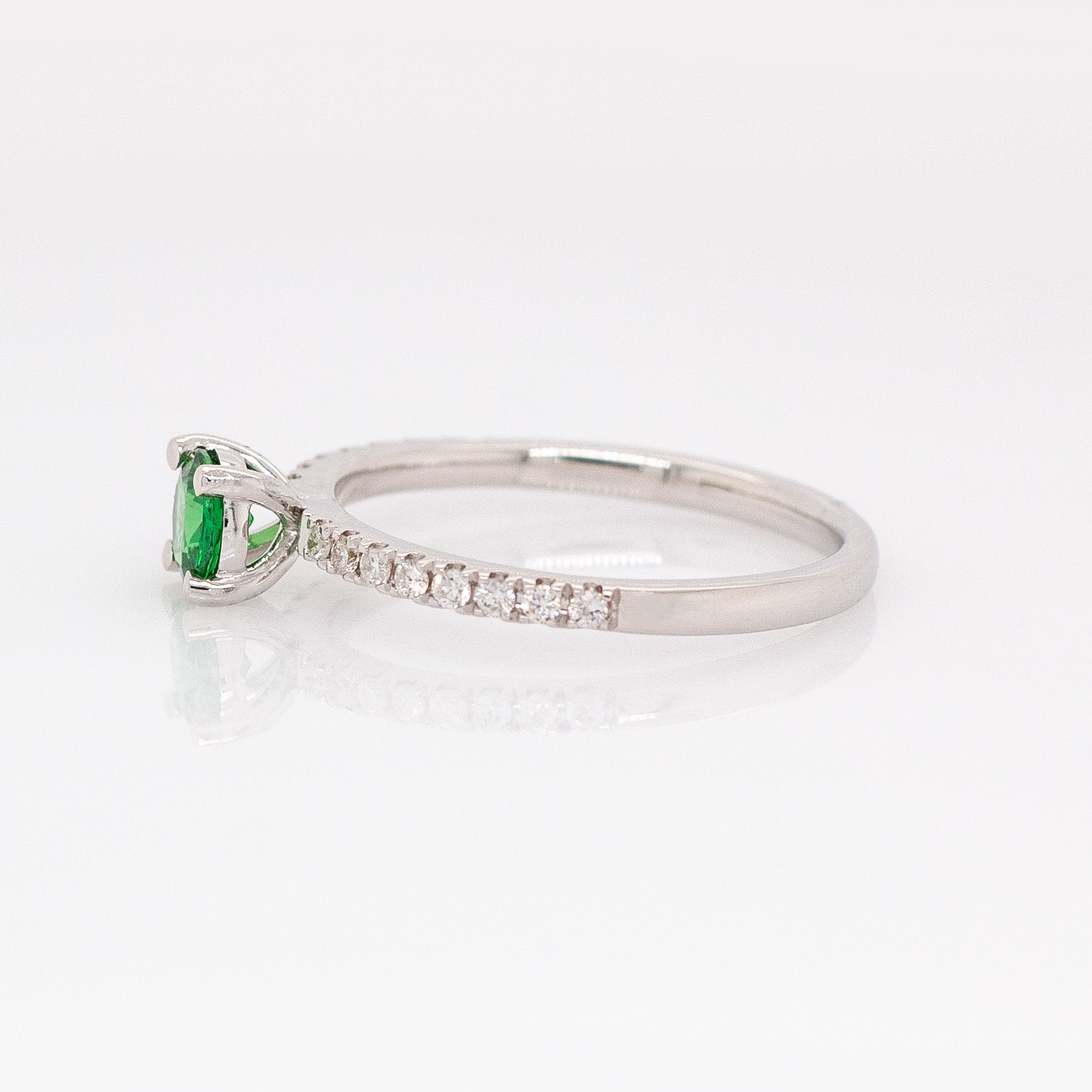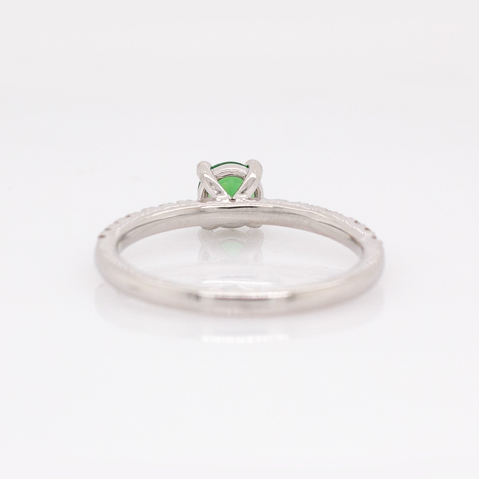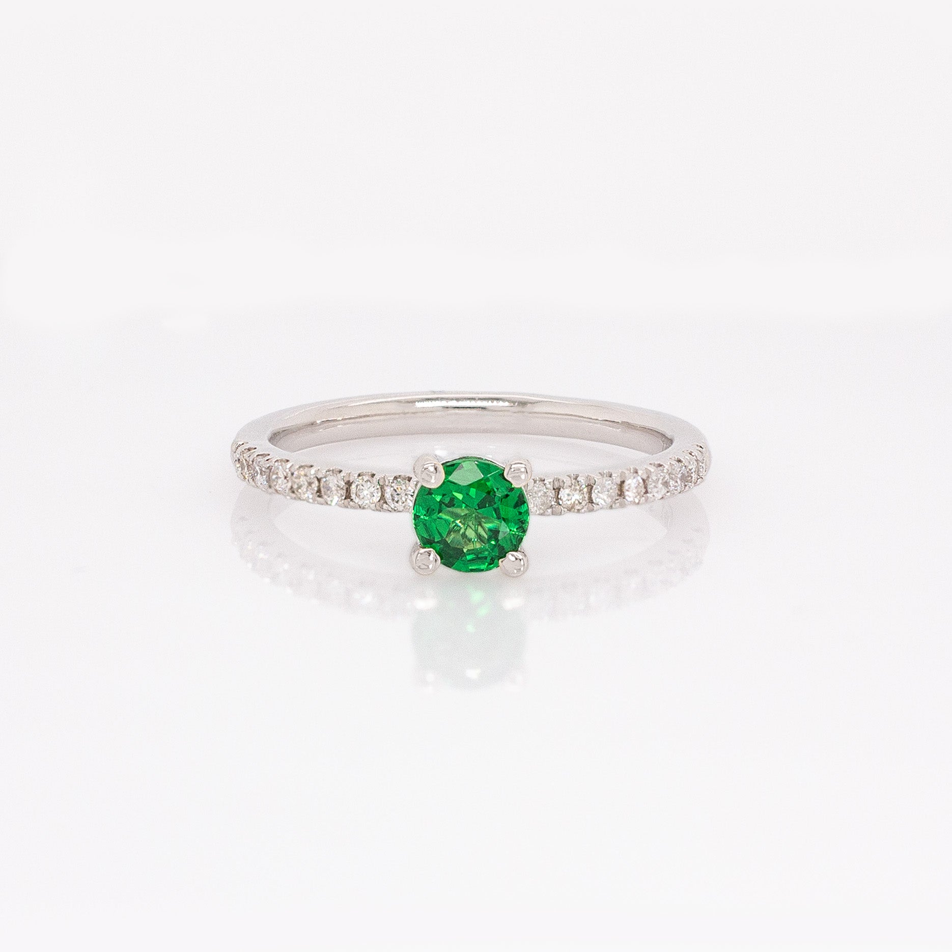 Dovie Solid 14k White Gold Tsavorite Garnet Ring with Natural Diamonds Accents | Round 4.5mm