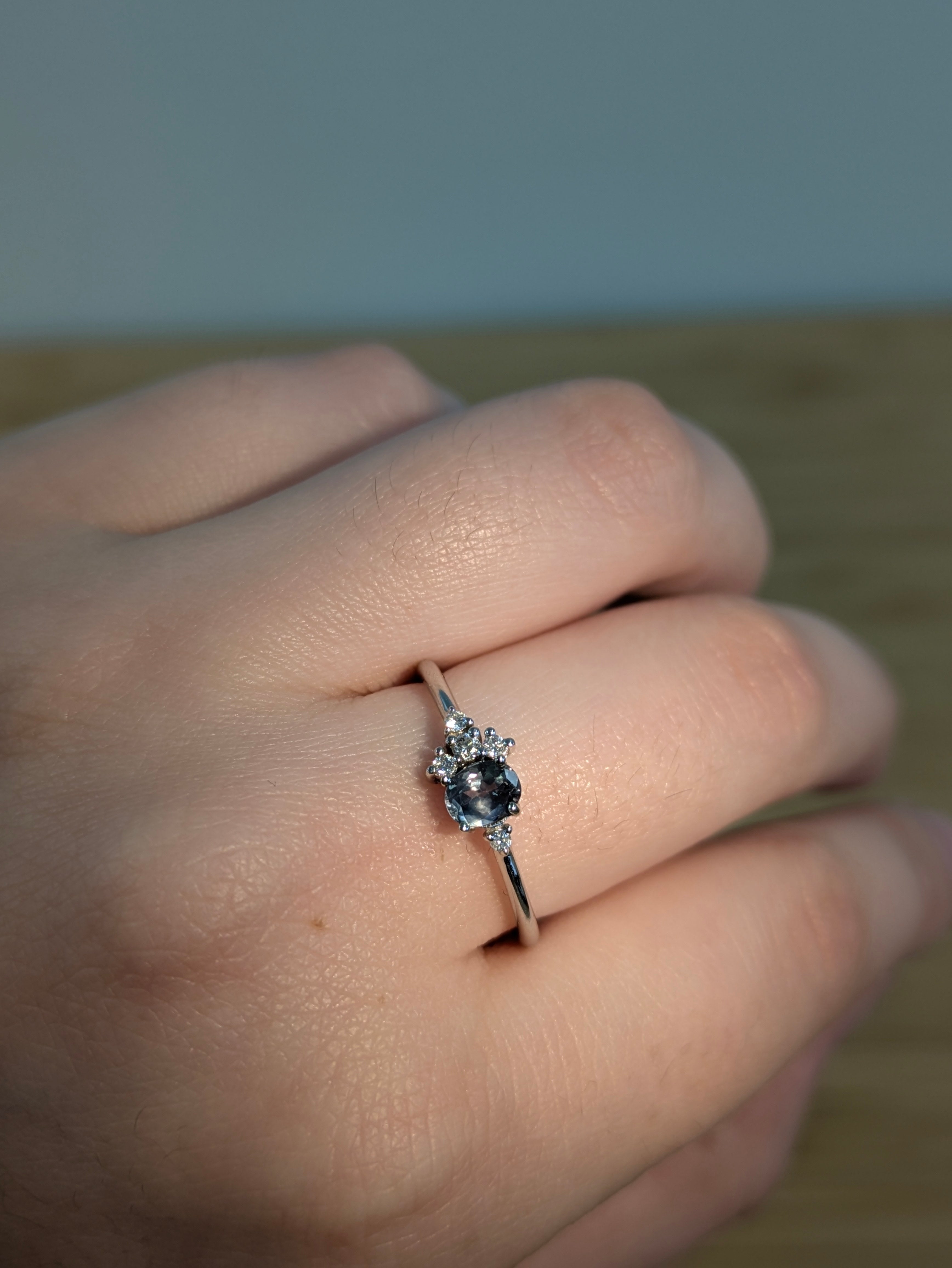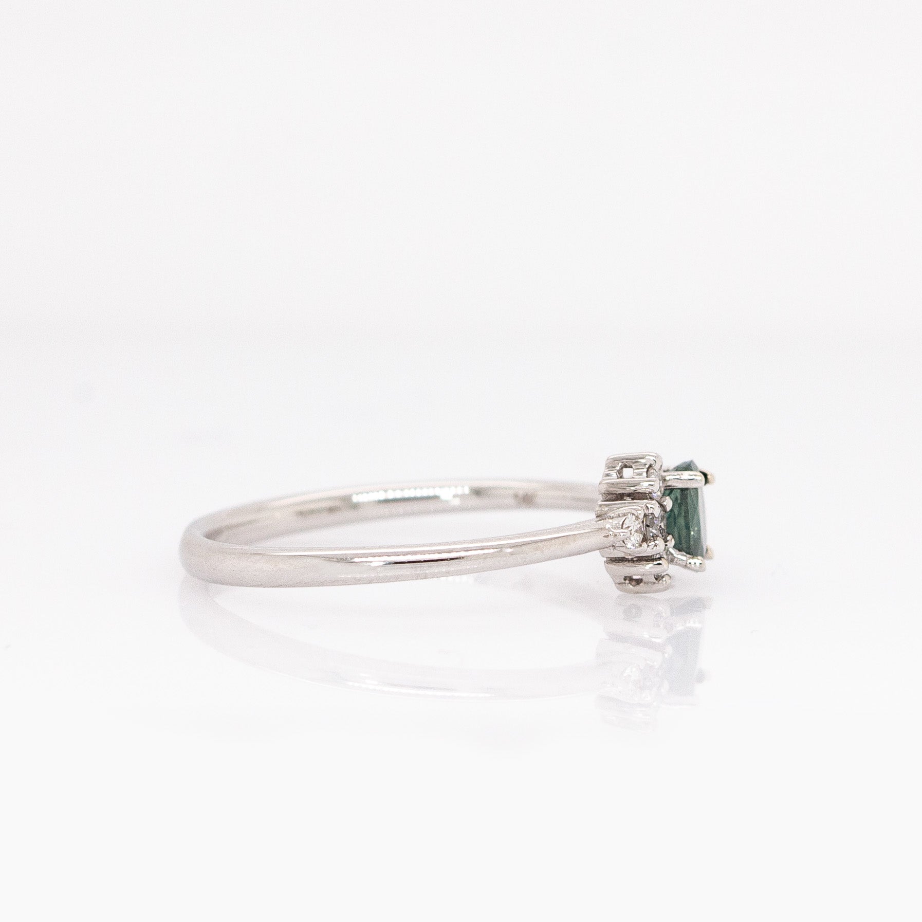 Zinnia Solid 14k White Gold Demantoid Ring with Natural Diamond Accents | Oval 5x4mm