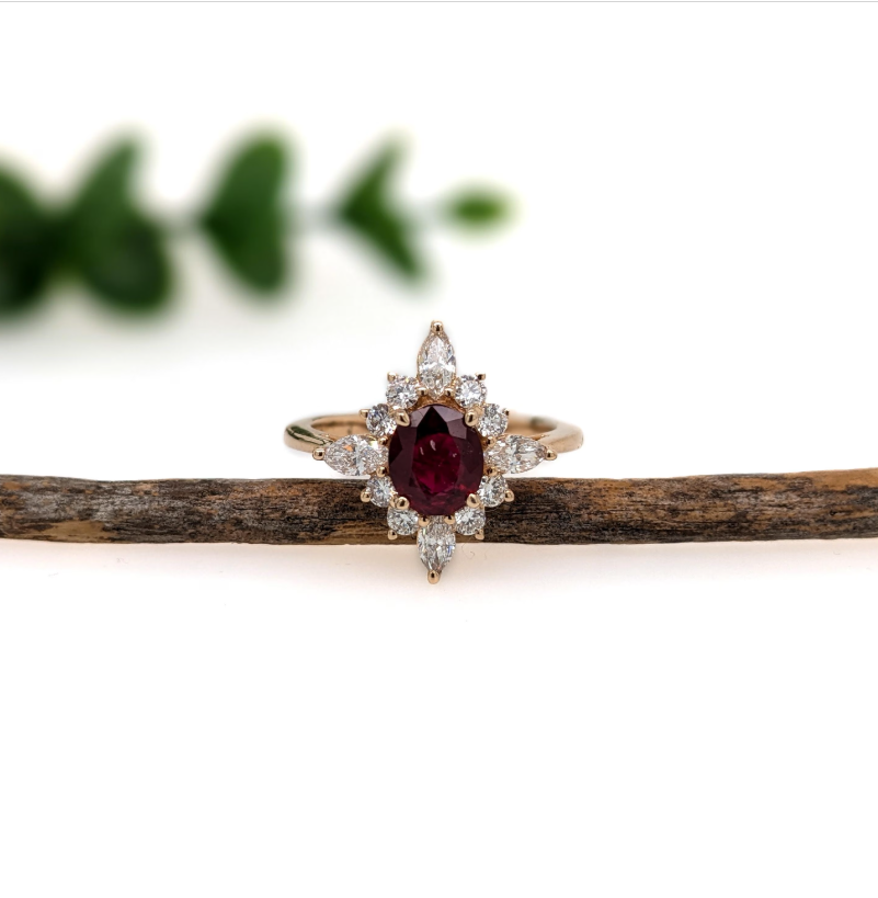 Bespoke North Star Ring Setting w Natural Diamond Halo in 14K Solid Gold