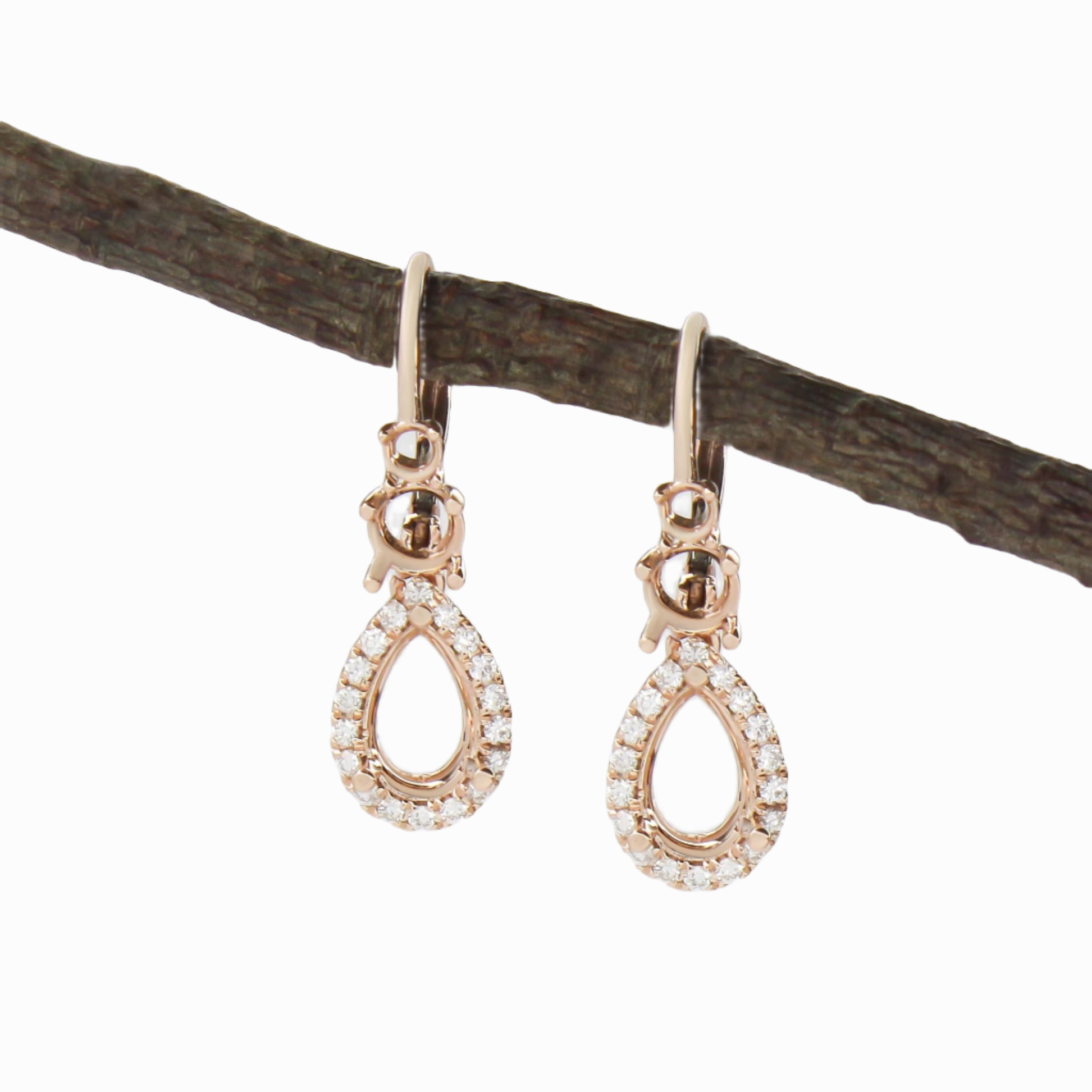 Earring Semi Mount w Earth Mined Diamonds in Solid 14K Gold | Pear 8.4x5.4mm