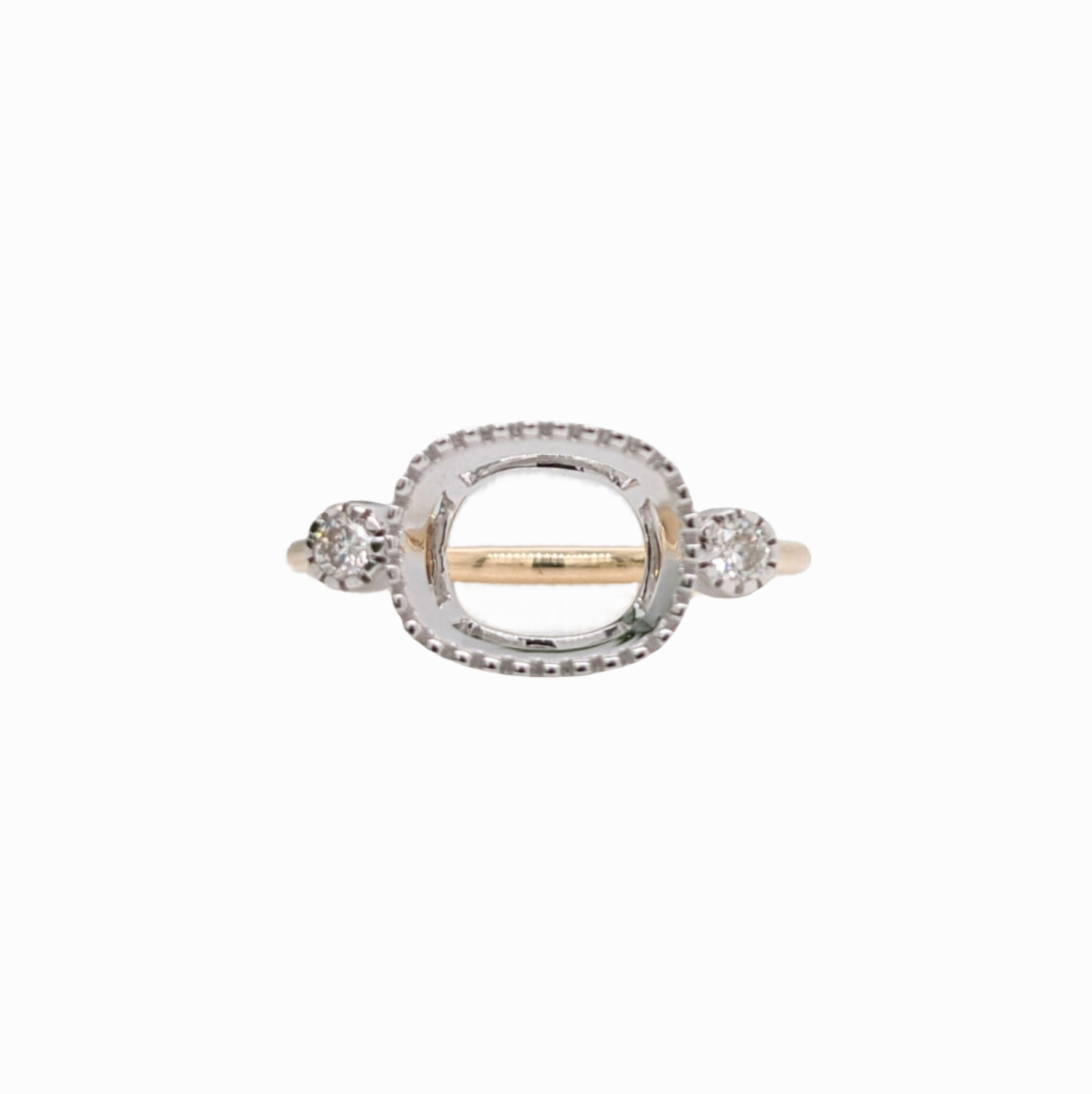 East West Cushion Cut Ring Setting w Natural Diamond Accents and Milgrain Detail in 14K Solid Gold | Customizable