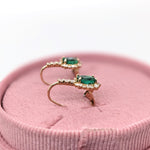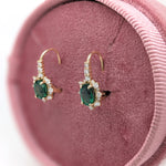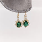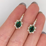 Emerald Drop Earrings w Earth Mined Diamonds in Solid 14K Yellow Gold Oval 7x5mm | May Birthstone