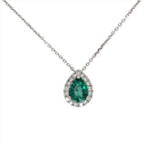 Emerald Pendant Necklace w Earth Mined Diamonds in Solid 14K White Gold | Pear Shape 7x5mm | May Birthstone