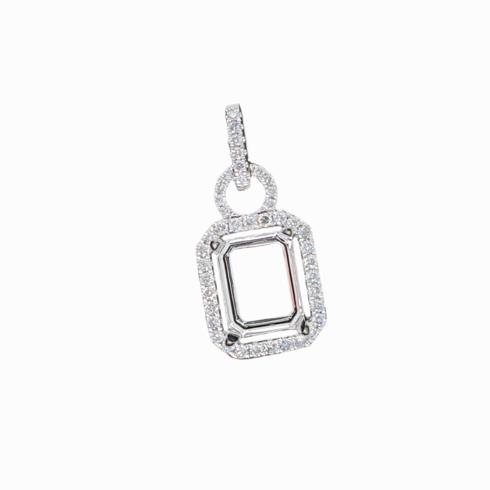 Glamorous Pendant Setting W Natural Diamond Accents in 14K Solid Gold | Emerald Cut | Customizable