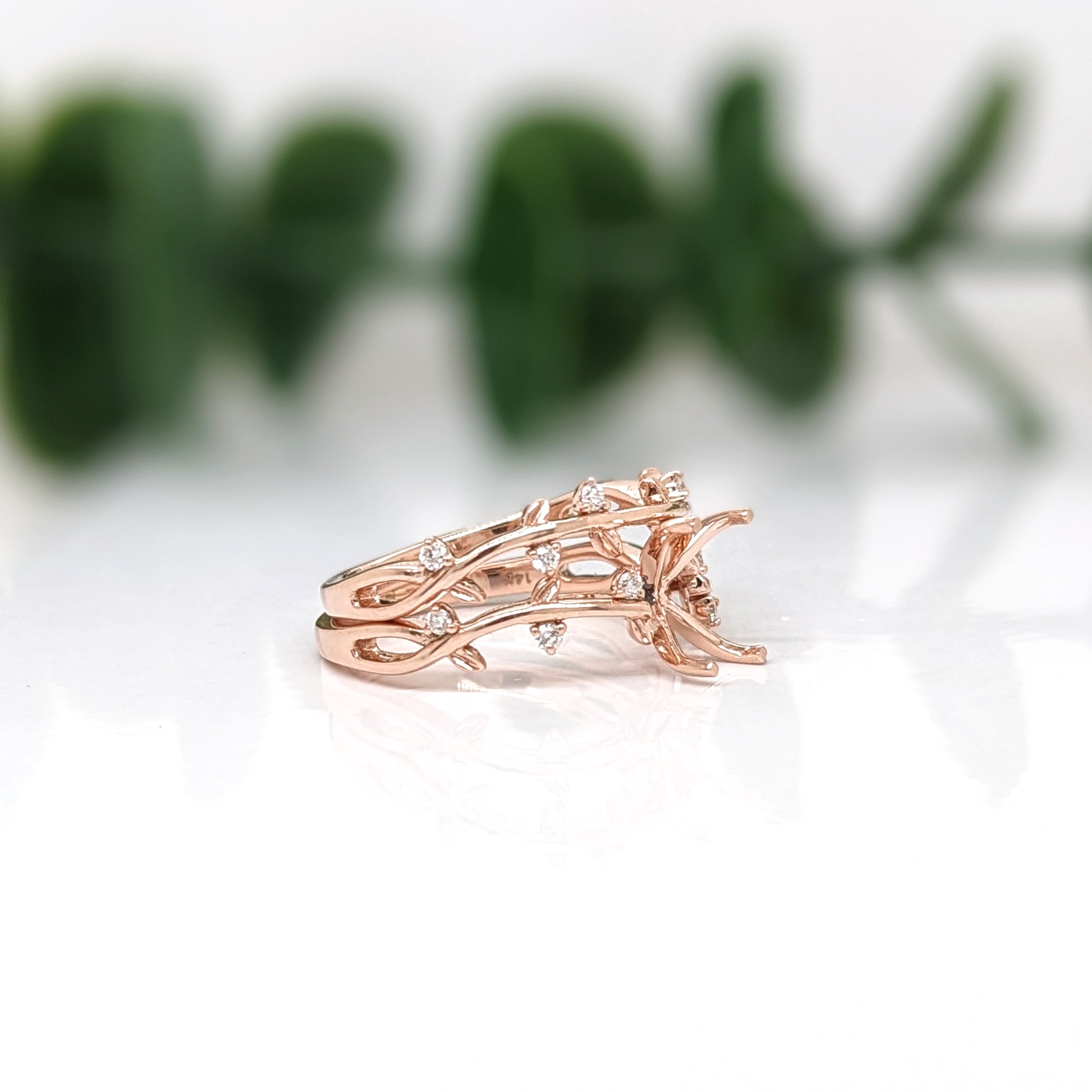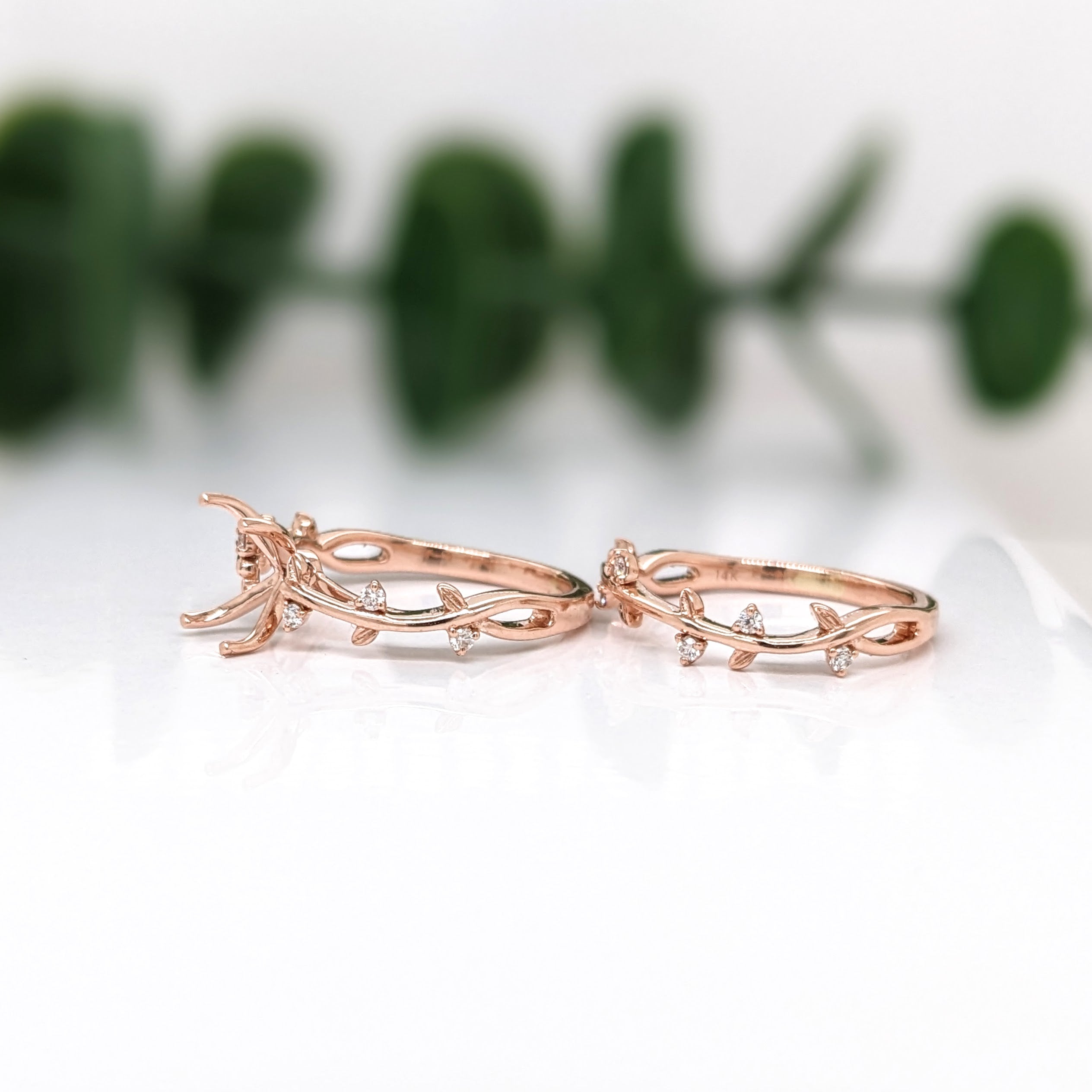 This beautiful ring semi mount features a 7x5mm emerald cut basket with natural earth mined diamonds set in solid 14K gold. This ring setting would be perfect for the center gemstone of your choice and can be a lovely birthstone gift for your loved ones!
