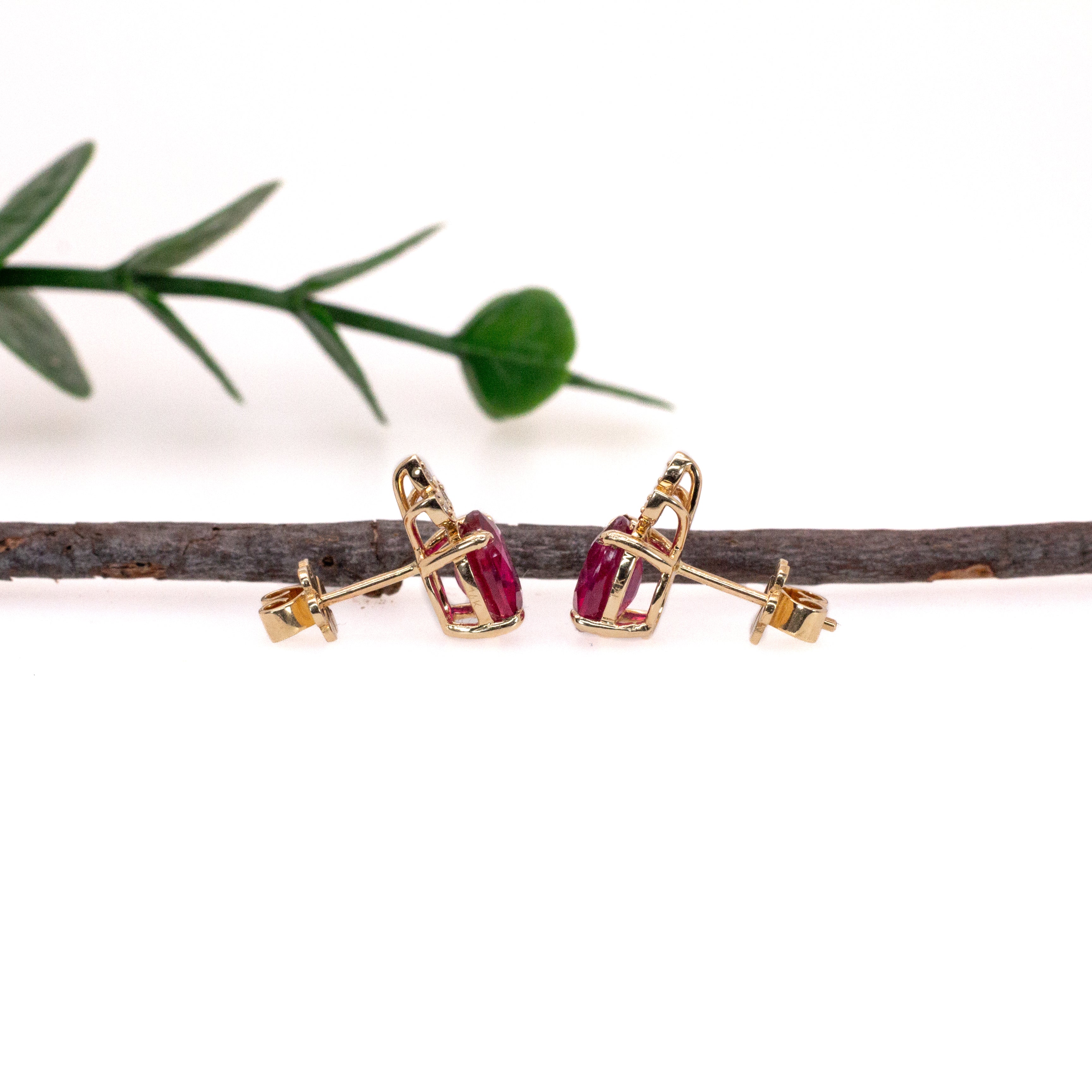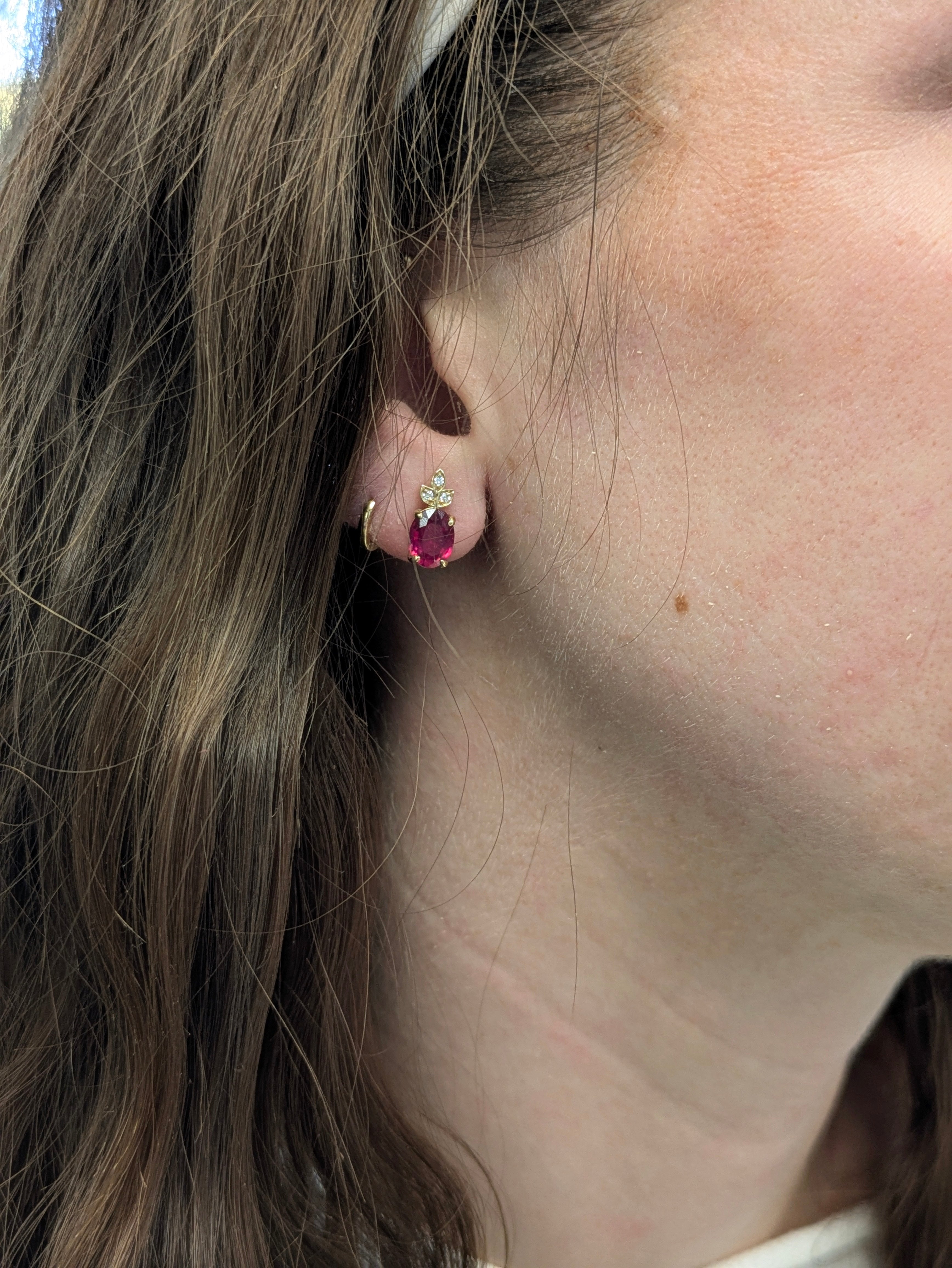 Rubella Madagascar Ruby Earrings with Alexandrite Accents: 14k Solid Gold, 8x6mm